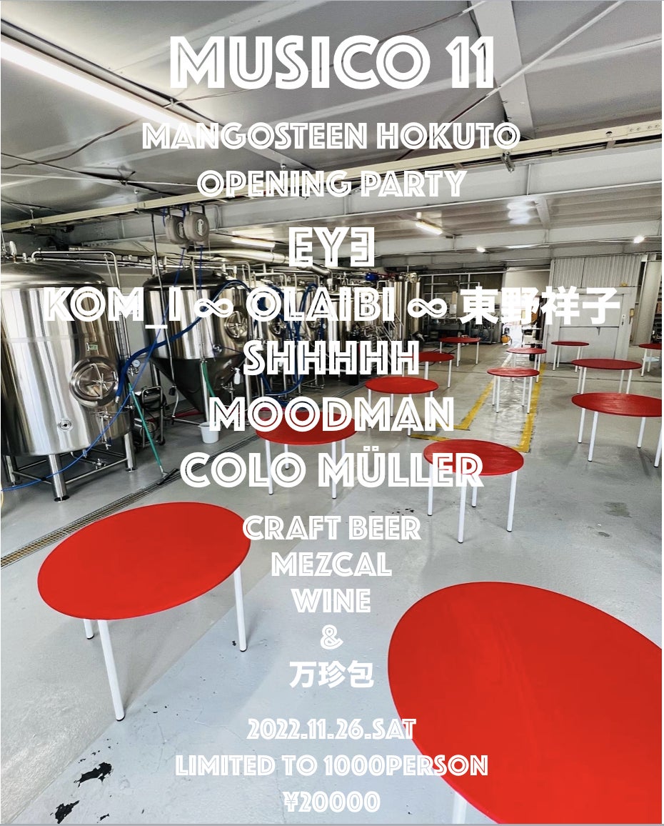 11月26日(sat)「MANGOSTEEN HOKUTO OPENNING PARTY 『MUSICO 11』」(100名様限定完全予約制)