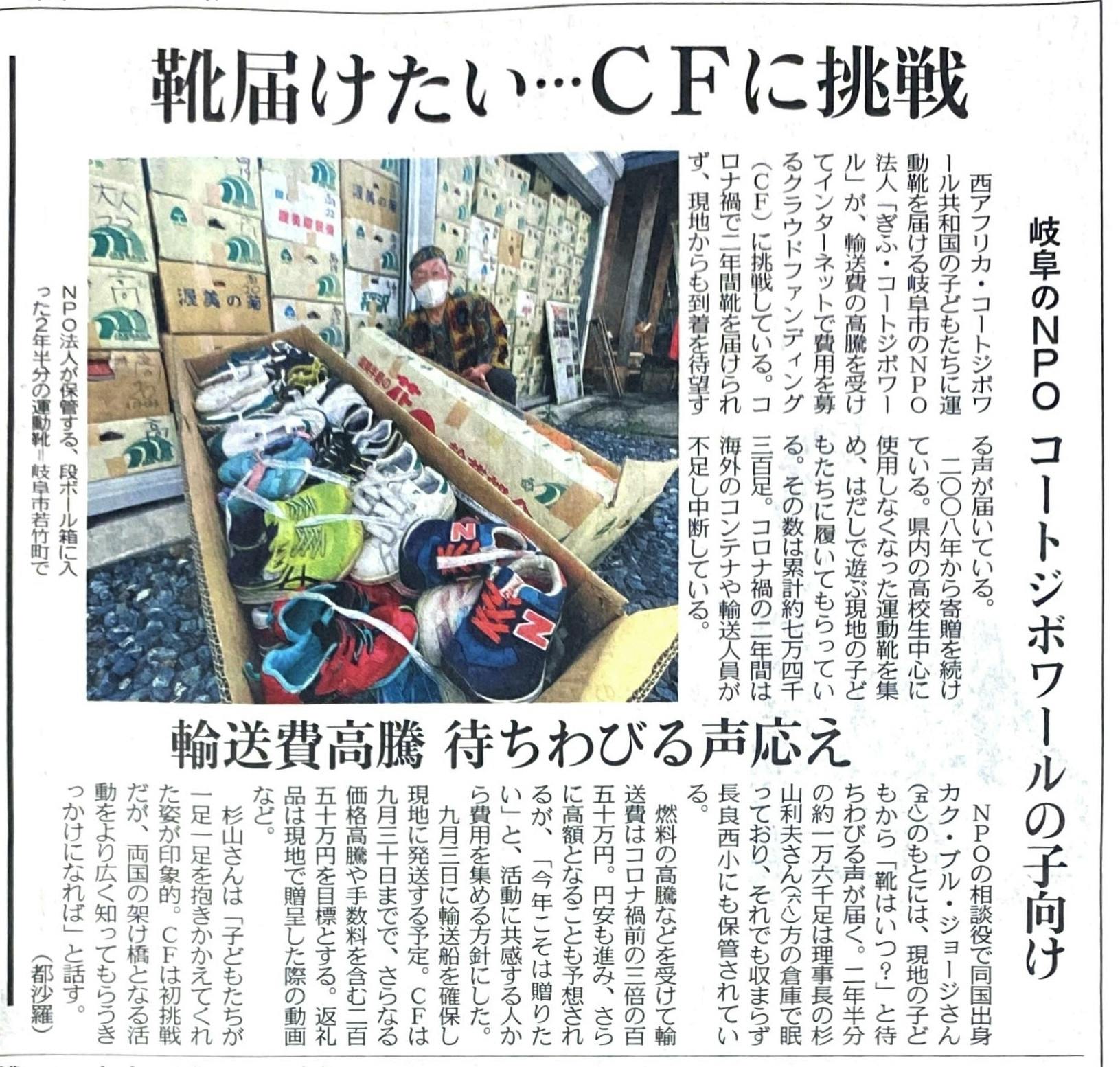 本日は、8月4日の中日新聞に本プロジェクトの活動を掲載頂きましたのでご報告致します。