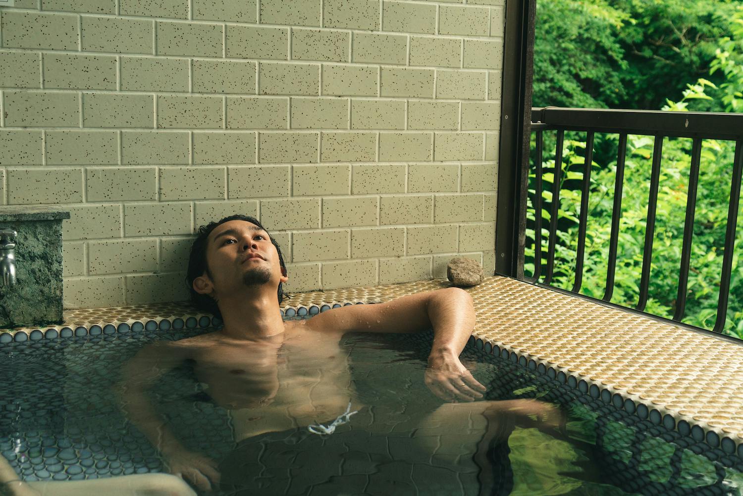 ④ 富士吉田の湧き水を汲み上げたお風呂を楽しむ。