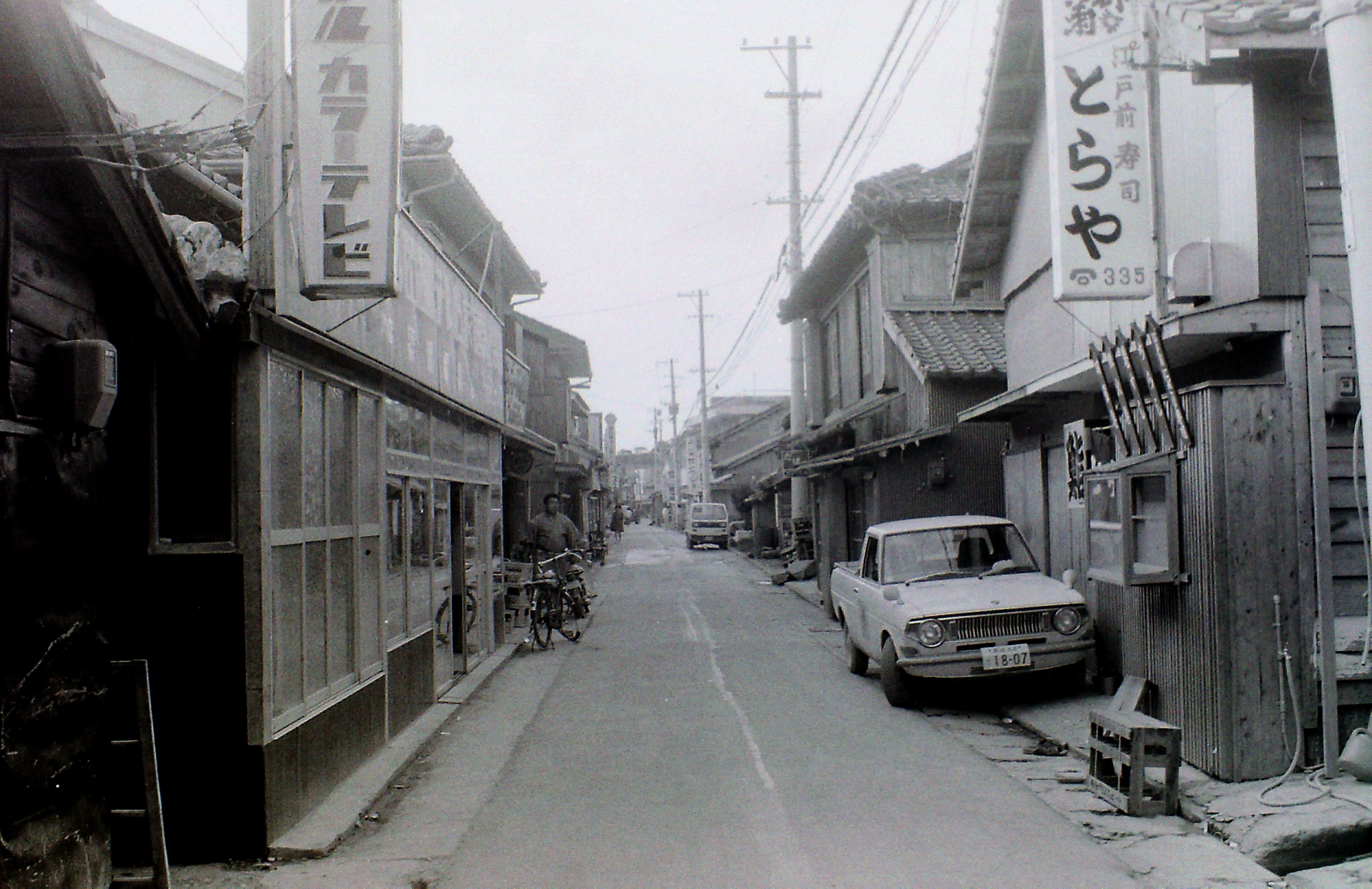 商店が軒を連ねる通り(昭和48年頃)。この頃はお寿司屋さんも数店あったそうです。