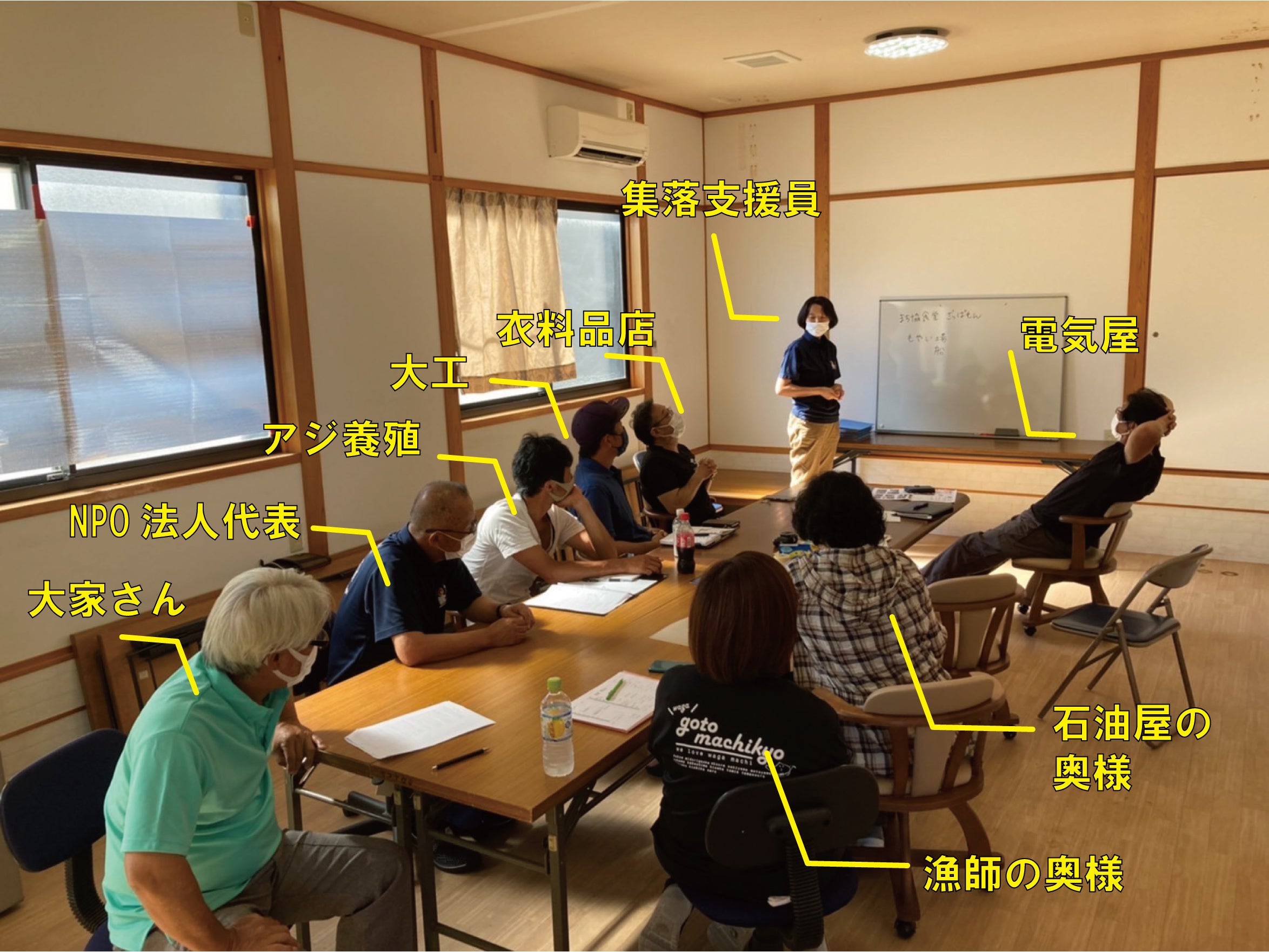 店舗を提供してくださった藤原さん。地域の古い写真をデータ化するなど地域活動にも積極的! 場所は決まった!やる気は十分!話し合いをしている地域振興部会のメンバーは、全員飲食経営の経験はありませんが、そのほとんどが奈留島で商売を営む人たちばかり。どうしたらお客さんは喜ぶのかはもちろんのこと、設備工事や仕入れについてはさすがプロ! どんどん計画が仕上がっていきました。