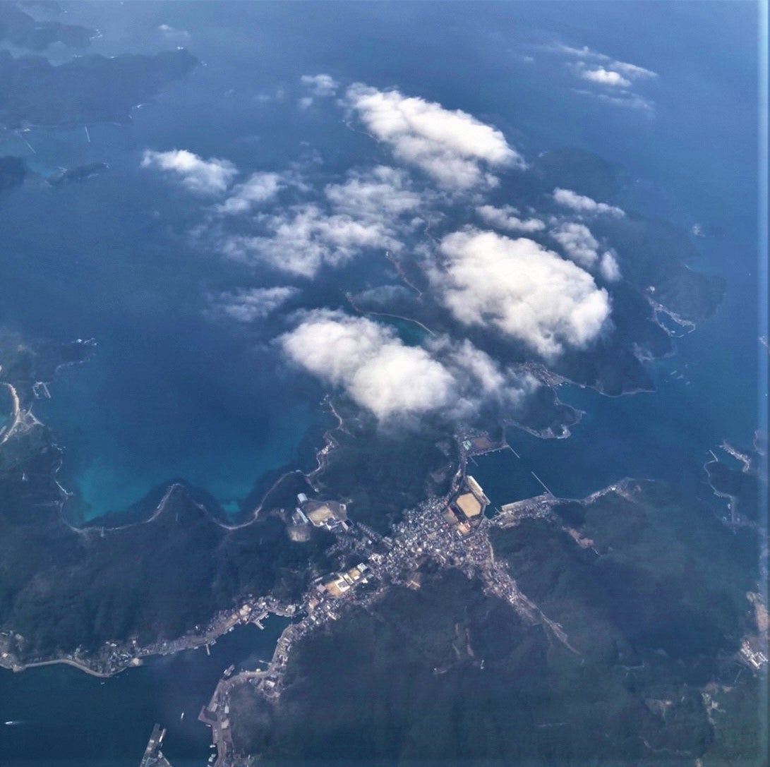 ジグザグとした海岸線に沿うように集落がある。写真中央は、奈留島の中心部。●ひそかに受け継がれた記憶“ふくれもち”