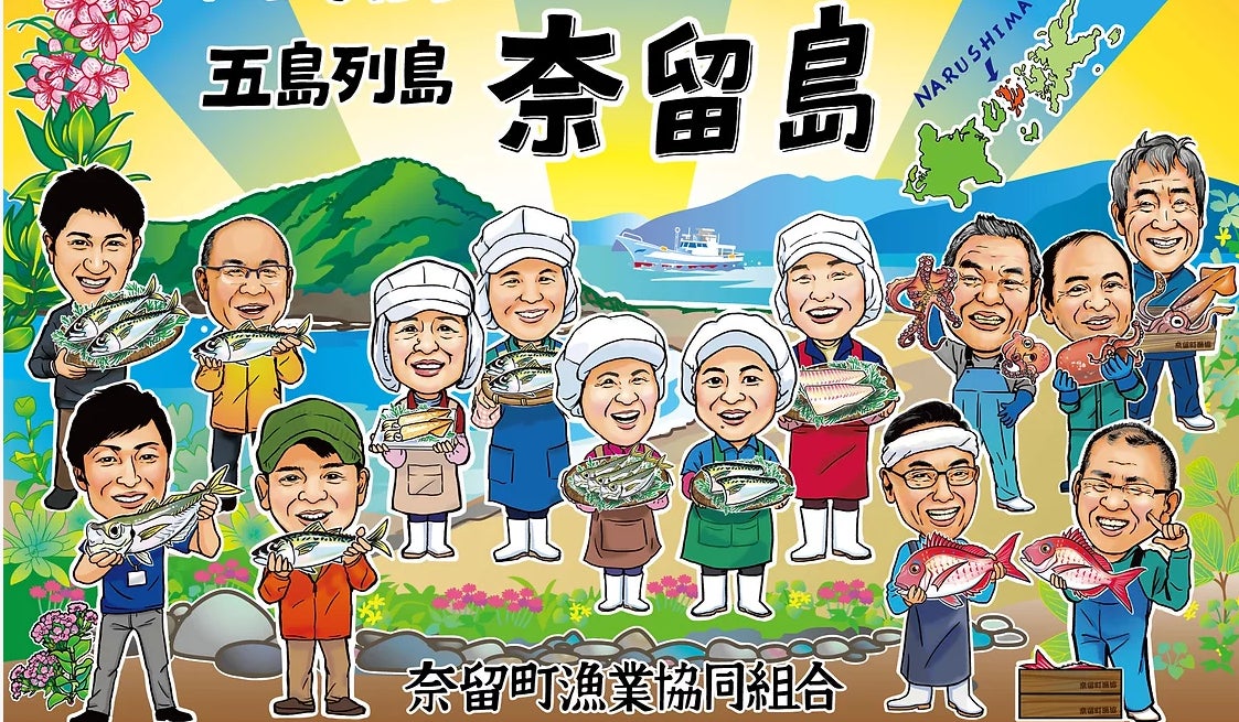 私たちの島・奈留島(なるしま)は、長崎県五島列島のちょうど真ん中に位置し、昔からまき網漁業の船団基地として栄え、今でも漁業が基幹産業の小さな島です。奈留島の魚は、福岡・大阪・東京はもちろん、遠くはアメリカまで出荷しています。