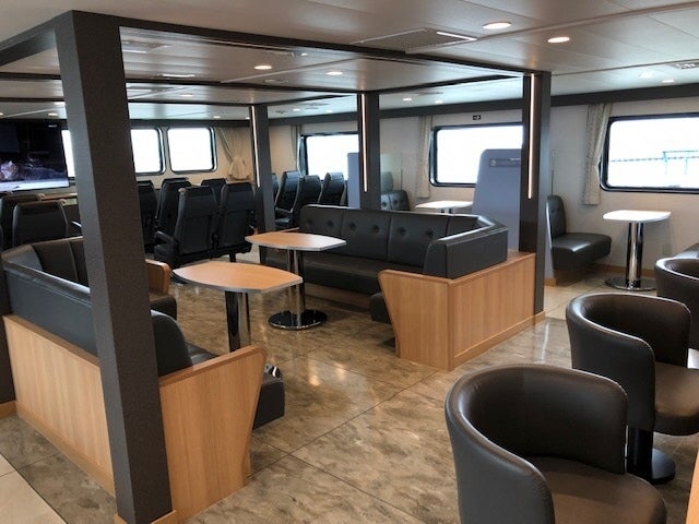 いろんなシートタイプがある船内。キッズスペースも完備!