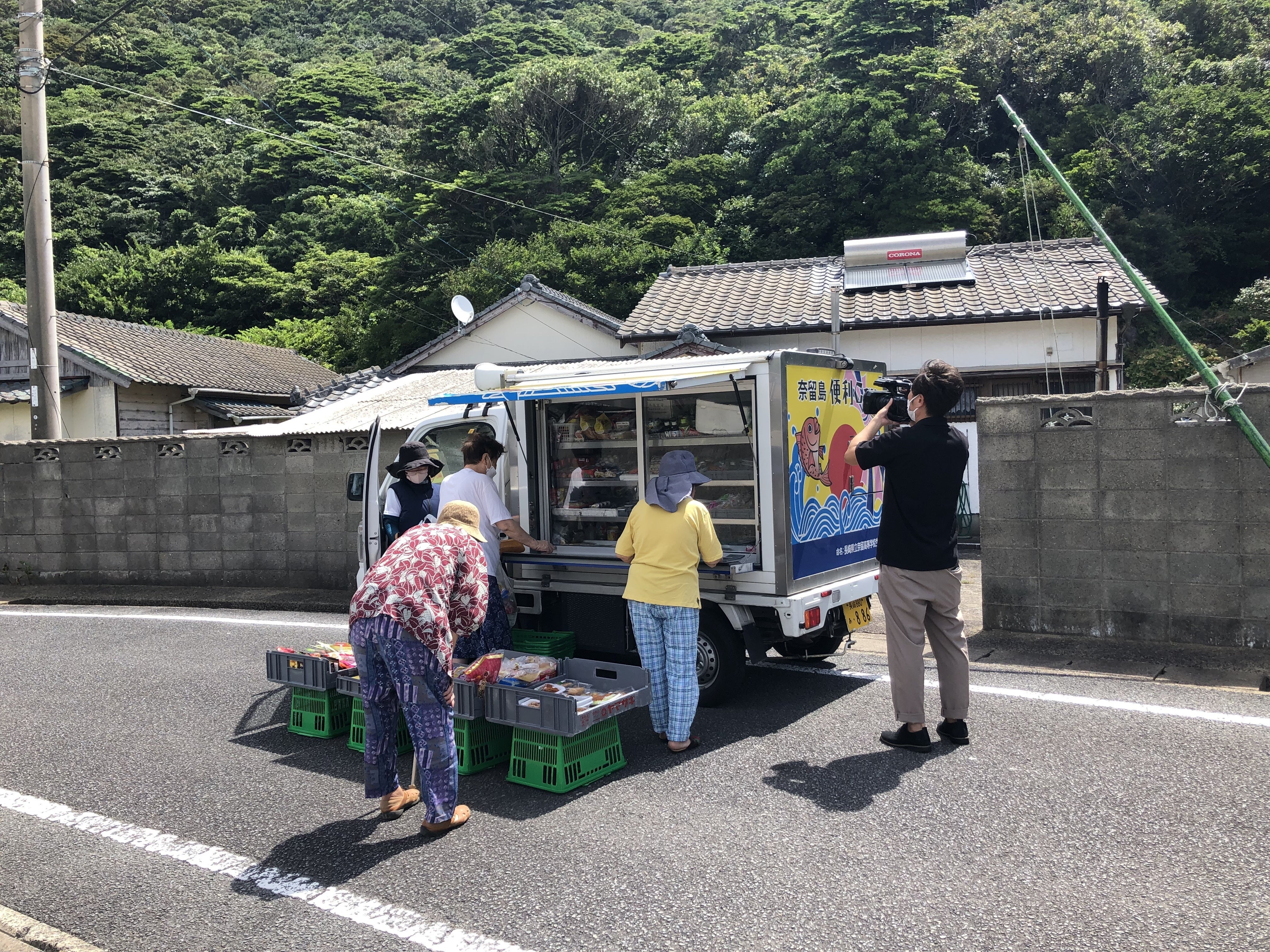 その中のひとつ、移動販売「便利カー」は、近くにお店がない15の地区を月〜金曜まで、冷蔵車のトラックに商品を載せて走っています。家の近くで買い物ができれば、住み慣れた家で生活ができるという高齢者の方も多くいらっしゃいます。地域も盛り上げることだけでなく、奈留に暮らすみなさんが幸せに毎日を送れるように寄り添うことも、奈留まち協の役割のひとつなんです。