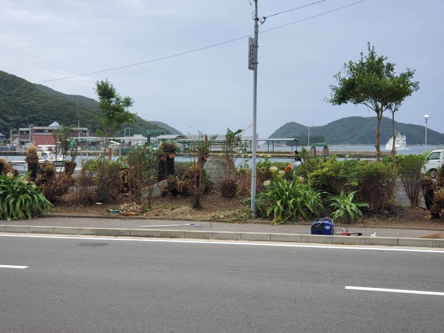 本日より、クラファンチャレンジ始まりました。PRもままならぬ中、さっそくのご支援ありがごうざいます!嬉しいです。さて、先週は今回作る拠点前の草刈りをみんなで行いました。台風による強風で全便欠航という離島っぷりがすごい日でしたが、風があって涼しいとポジティブにみっちり4時間がんばりました。草も刈り、クラファンも始まり、ドタバタですが、島のみんなで一歩ずつ前進しています!これが同じ場所の草刈り前…。ジャングルがなくなり、船も海も見れるようになりました!