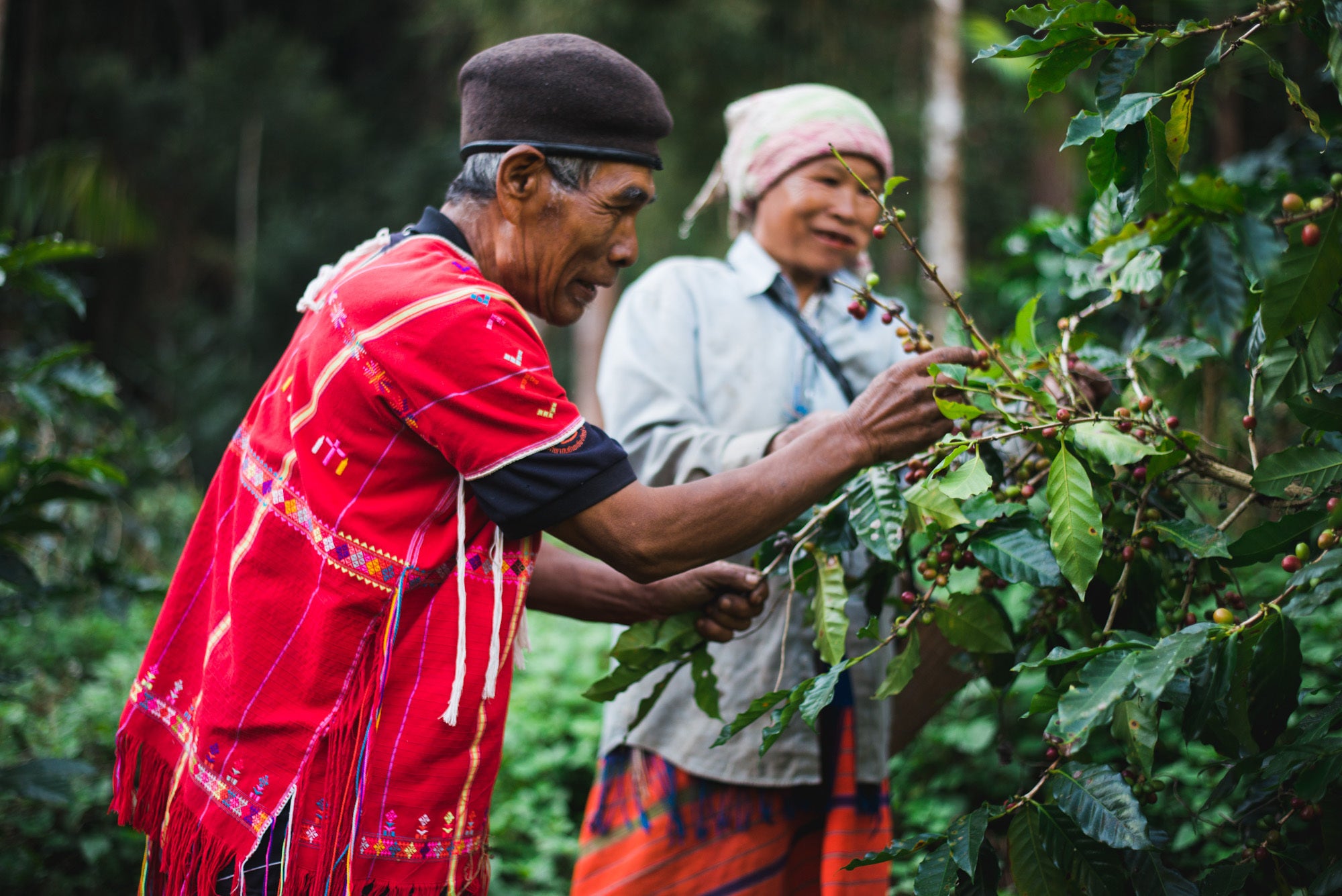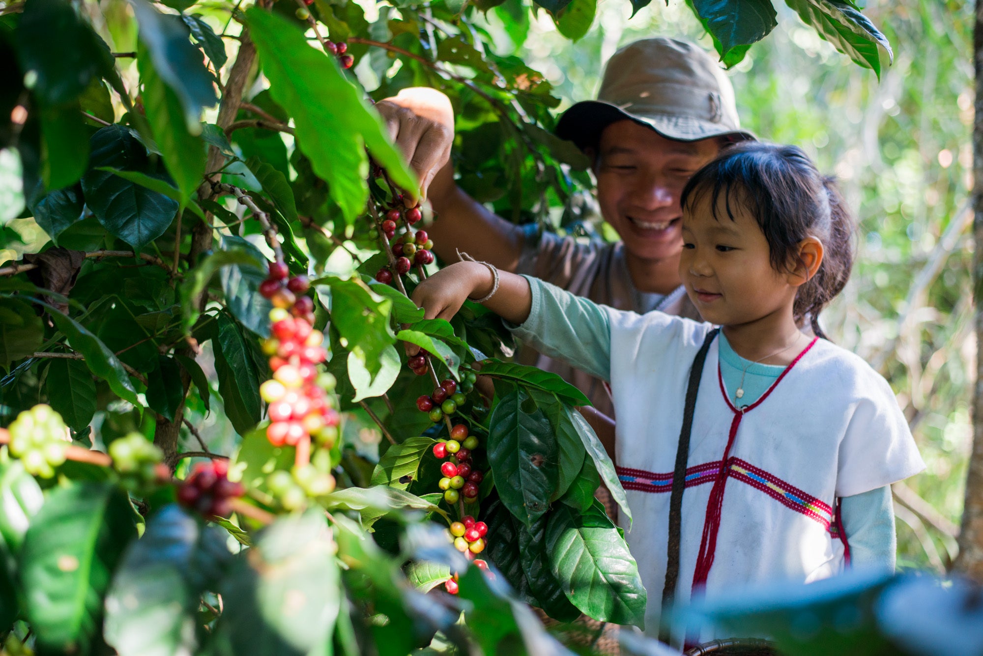 スエさんと長女 標高1100mの森の中でコーヒーの実はなります。