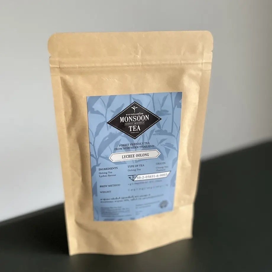 最後はお茶です。北タイの野生の茶葉のみで作っているお茶です。モンスーンティーと言います。