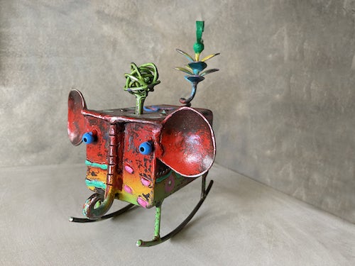 戸田ももこさんの夫、アーティスト ルカーさんの鉄で作る象のオルゴールもあります!