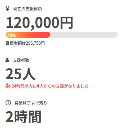 このプロジェクトは、2022/07/05に募集を開始し、 25人の支援により 120,000円の資金を集め、 2022/07/31に募集を終了しました