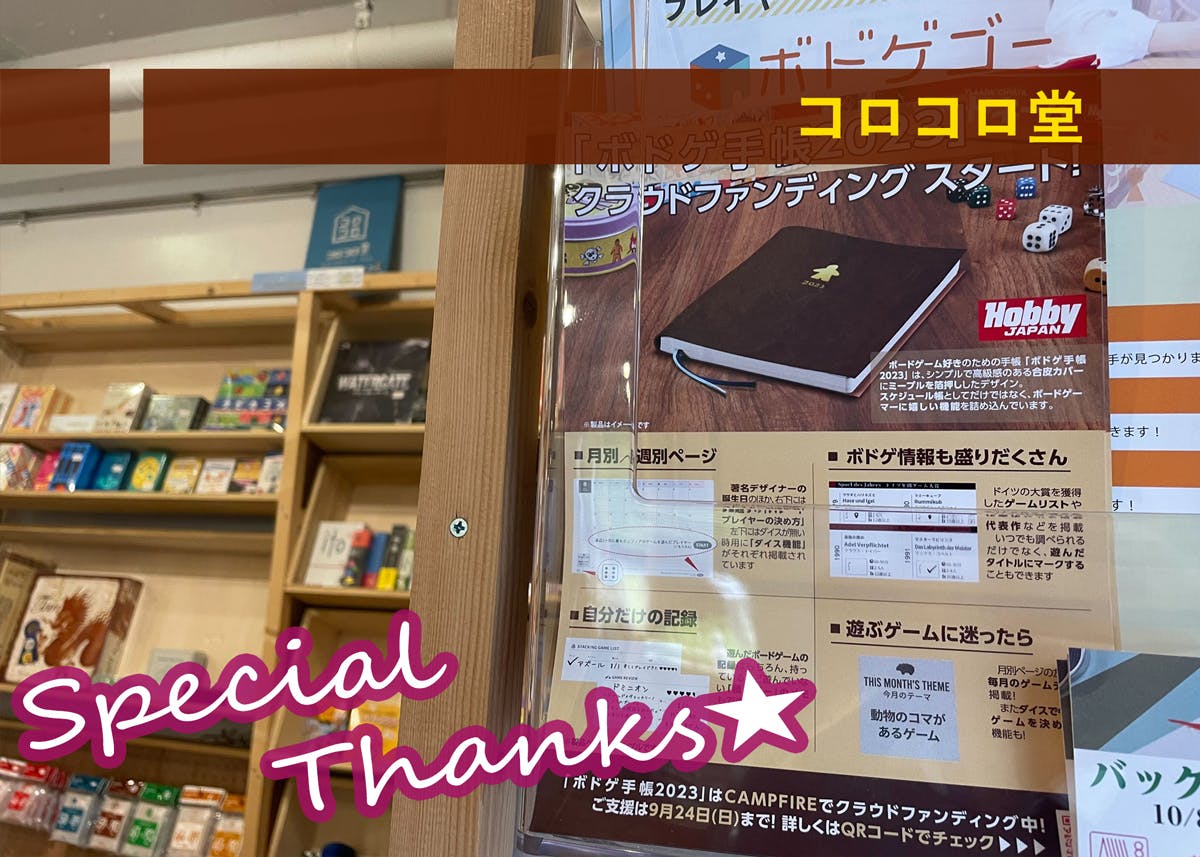 コロコロ堂さんに行かれた際は、ぜひ「ボドゲ手帳2022」のチラシも探してゲットしてみてください!