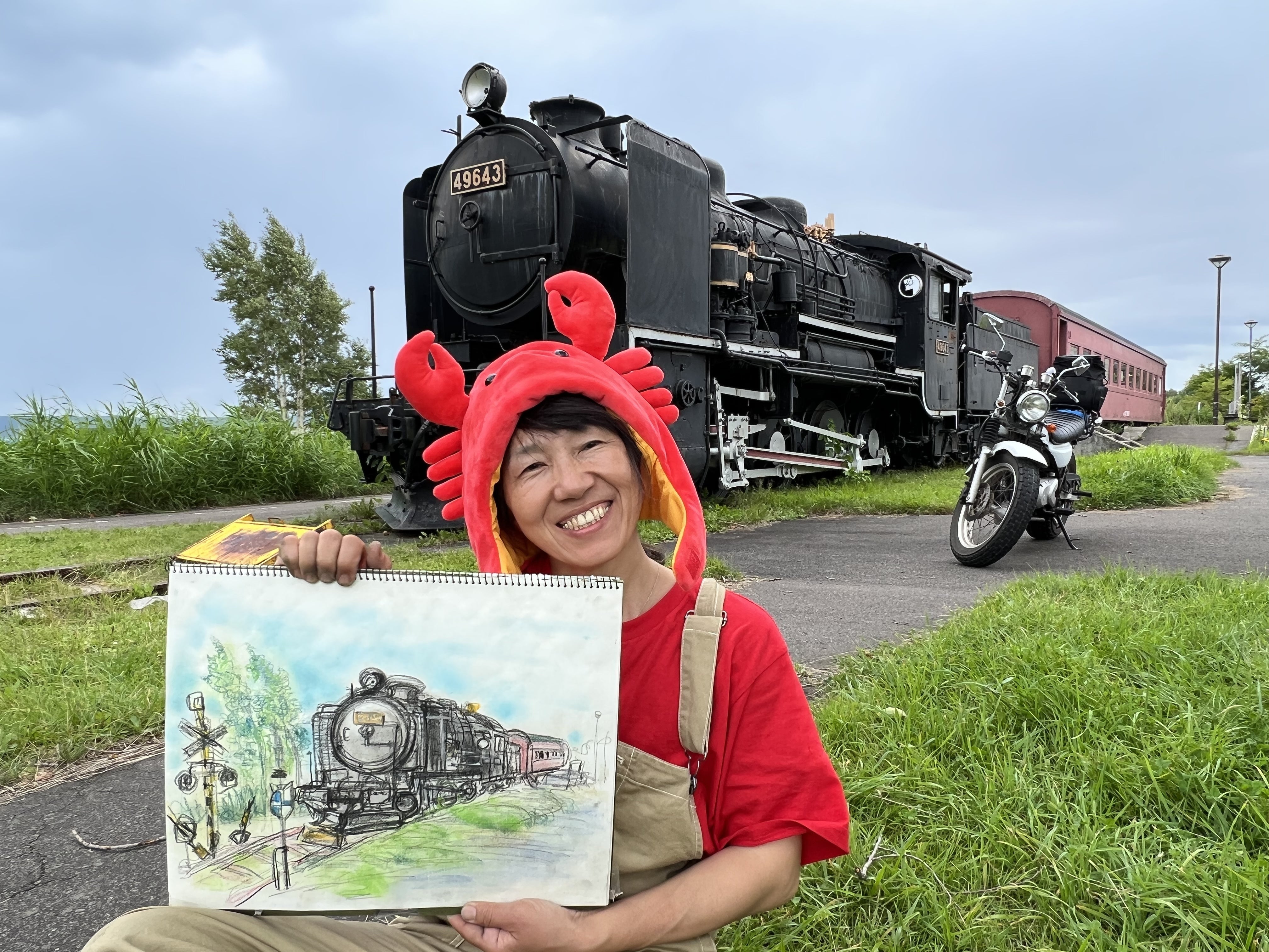 ほとんど人影もなくひっそりとたたずんでましたので描いてみました!こころなしかSL君嬉しそうにしておりましたよ!^ - ^