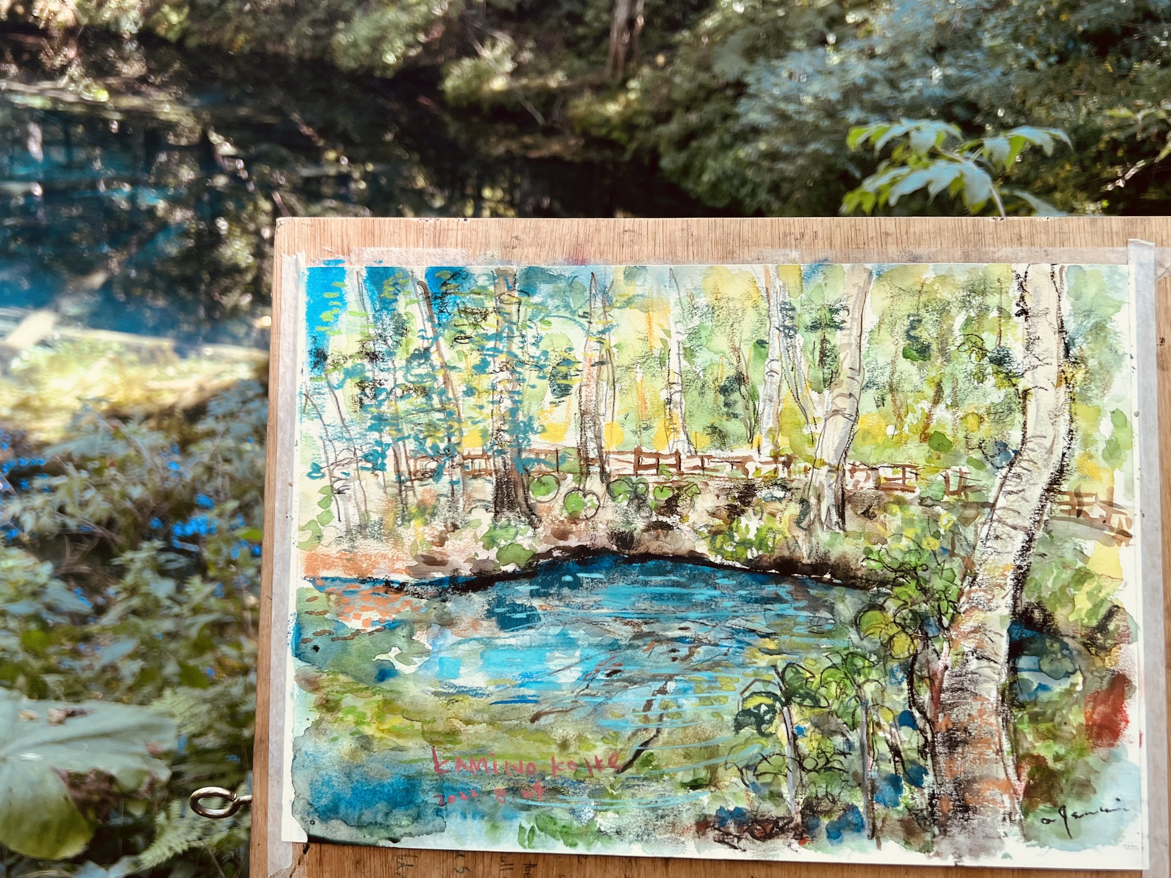 ときたま朱色に輝くオショロコマ(鱒類のお魚)が水面を横切り、まるで生きた抽象絵画のようで、ホォーっとため息が出るくらい美しいです^ - ^