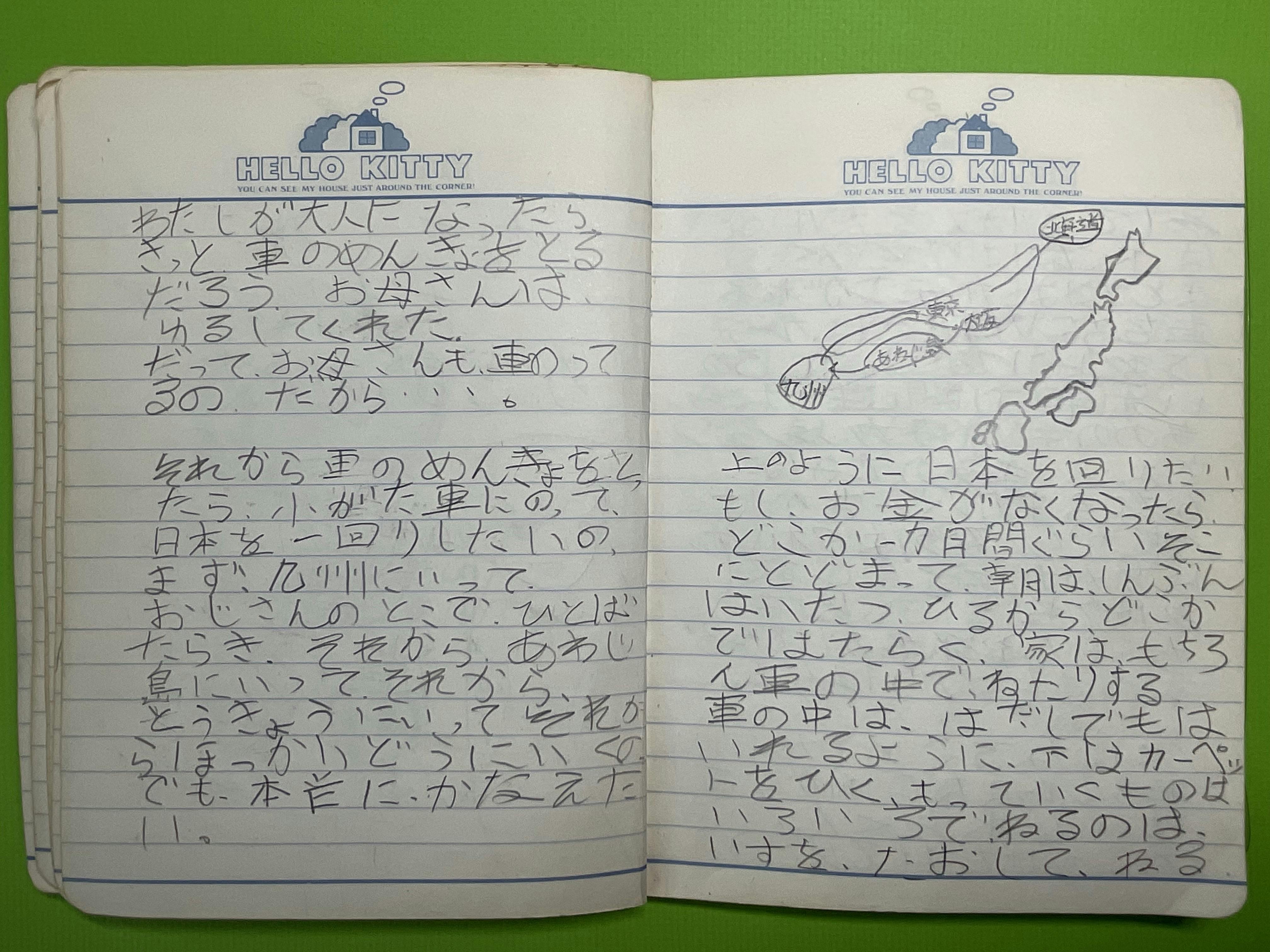 ※上記は小学四年生の日記帳。字が下手くそで間違えだらけで恥ずかしい(汗)だけどこんな時分から日本一周を夢見ていたなんてww |