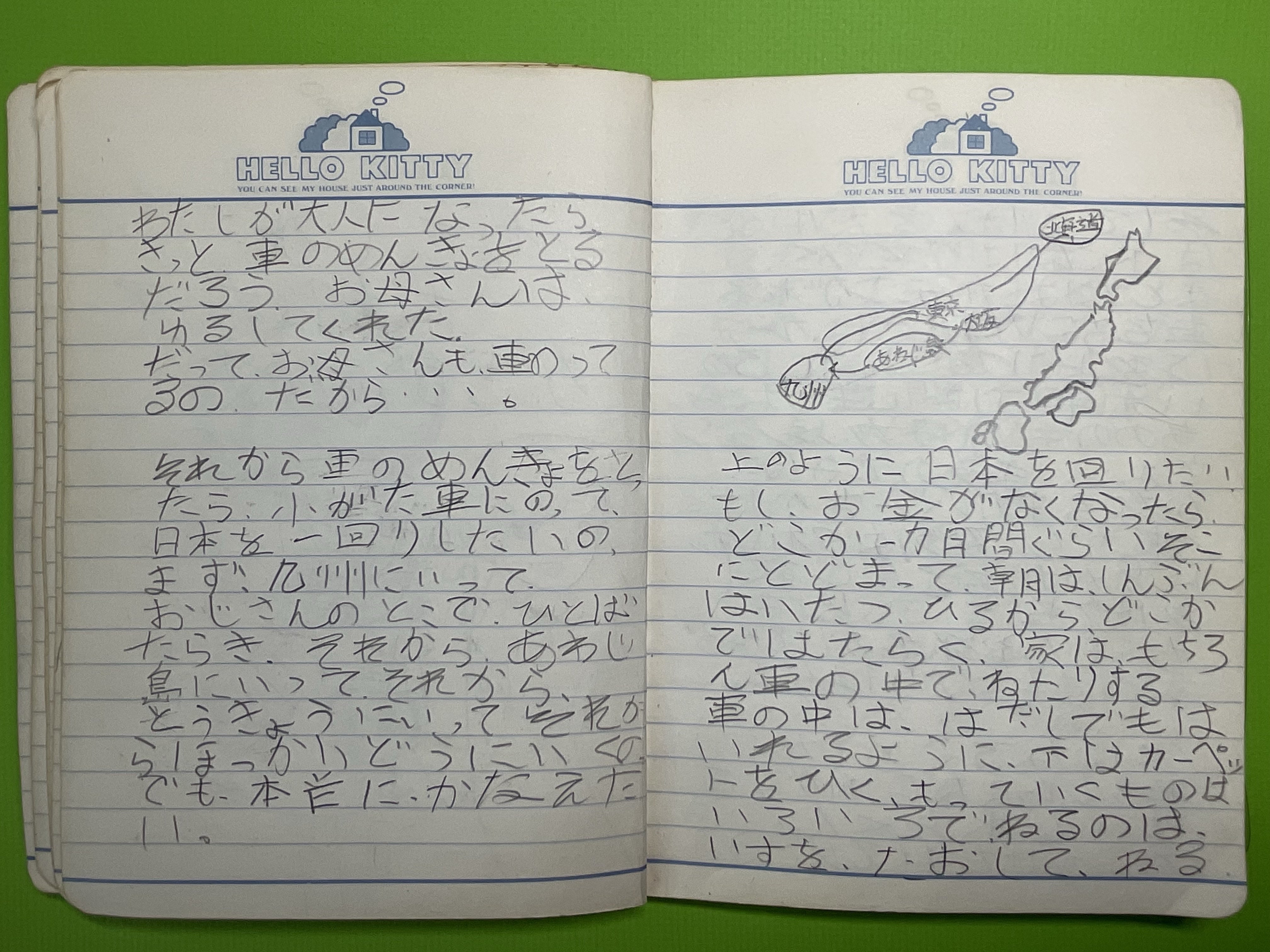 ※上記は小学四年生の日記帳。字が下手くそで間違えだらけで恥ずかしい(汗)だけどこんな時分から日本一周を夢見ていたなんてww |