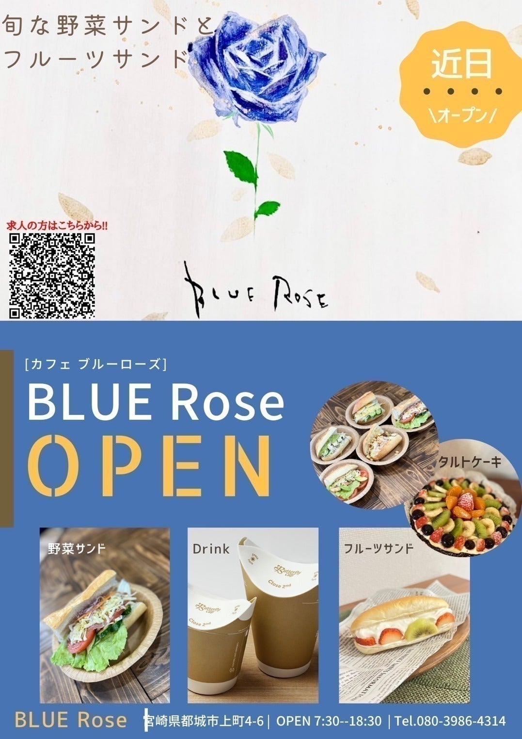 こだわりの生産品を活かした、サンドやフレッシュジュースなど沢山の方に味わってもらい、BLUERoseを知っていただきたいです。