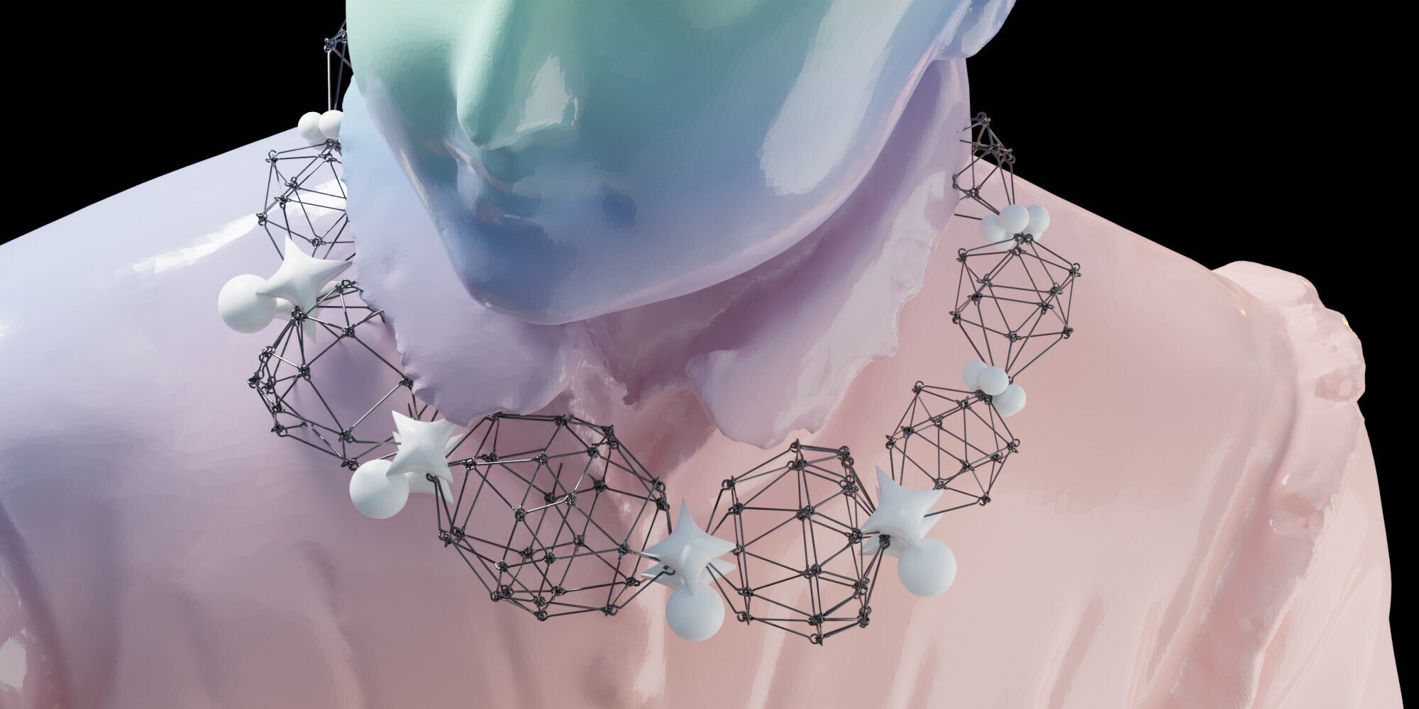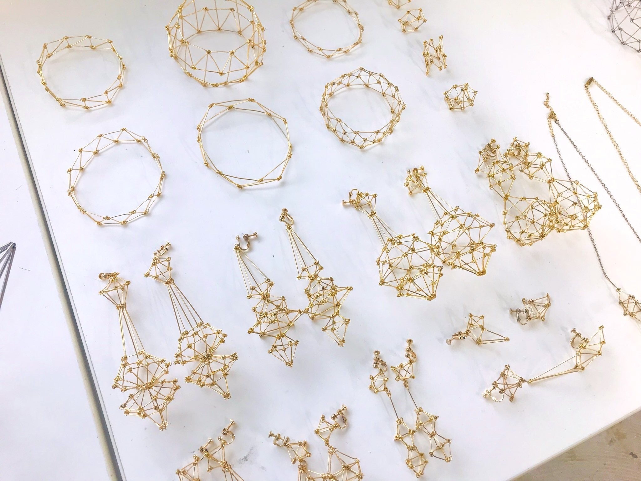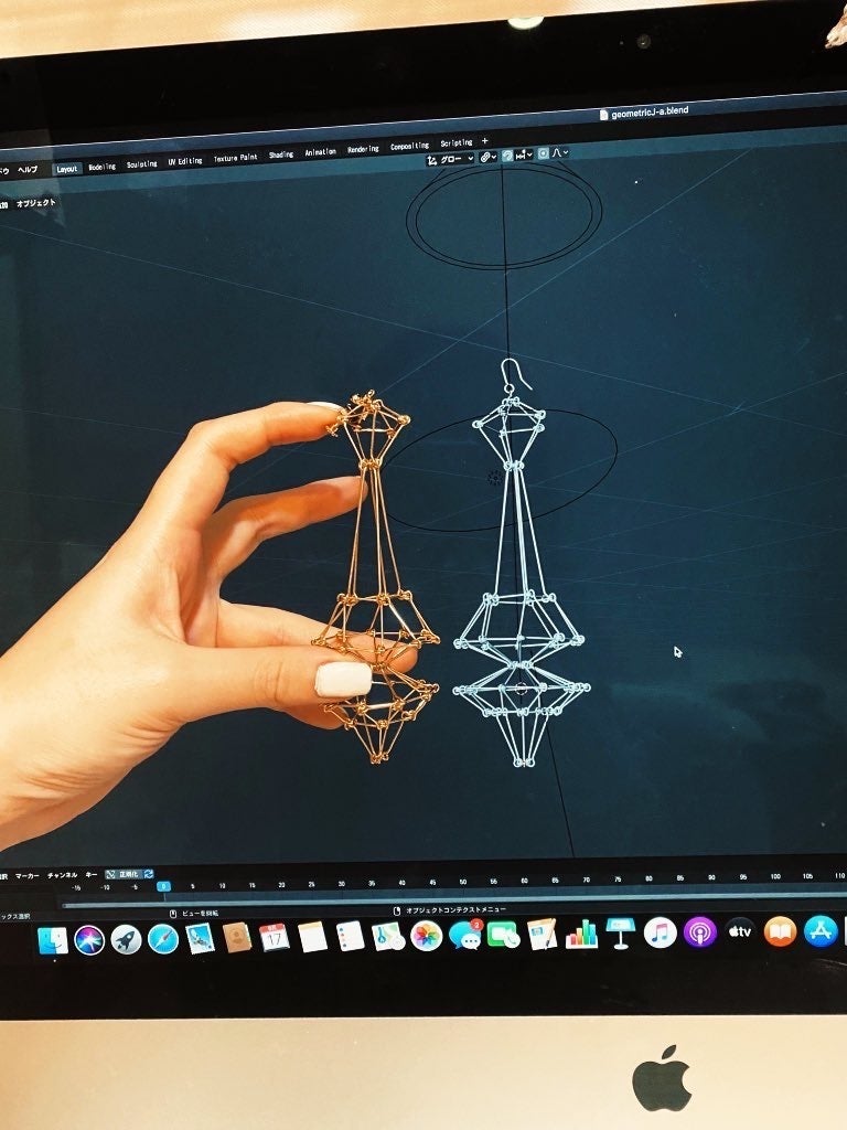 はじめまして、アクセサリー作家のニロス屋です。9ピンという金属の手芸用資材を使って、建築技法のトラス構造を応用したアクセサリーの制作をしています。幾何学的で近未来な見た目と、軽く丈夫な構造体の特性が魅力です。素材の繊細さと構造の堅牢さが合わさったトリッキーで自由なデザインのアクセサリーです。3DCGでリアルサイズの設計図を制作したり、ARで地球のどこにいても手元に召喚できるような仕掛けを作ったりもしています。
