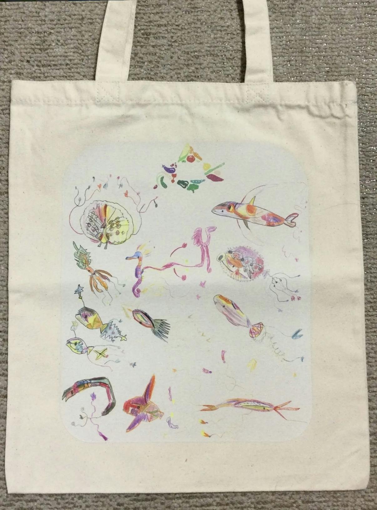 息子の描いた絵をトートバックにして、とうもろこし5本入りのリターンのセットにしました