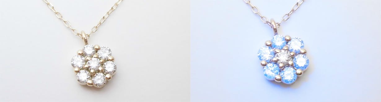 上の写真のような透明感、輝きのあるダイヤモンドを使用致しております
