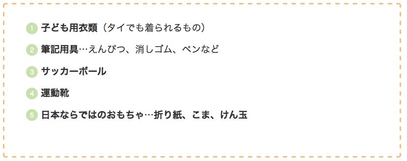 一人ではなかなか海外に直接荷物を送るのは難しいかもしれません…。なので今回、皆様からの物資をひとつにまとめてタイへ輸送したいと思います!子ども達に必要な下記のものを、募集いたします。是非、ご協力をお願いいたします!