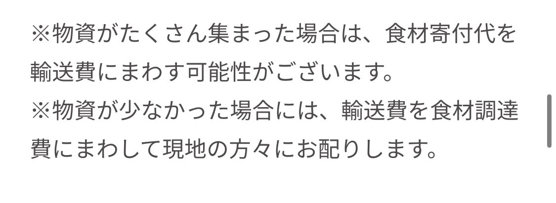 輸送費が10万円の予定だったものが、100キロ以上集まるという奇跡が起こったため、16万円となりました。(記載の通り、現地調達費を輸送費に充てさせていただきました。何卒ご理解の程よろしくお願い致します。)