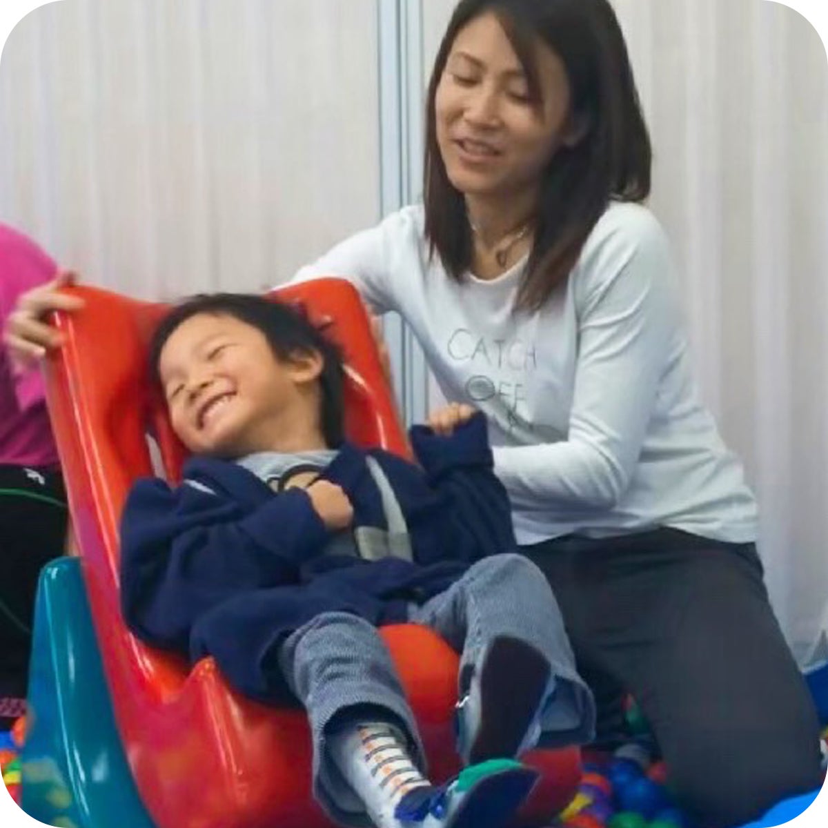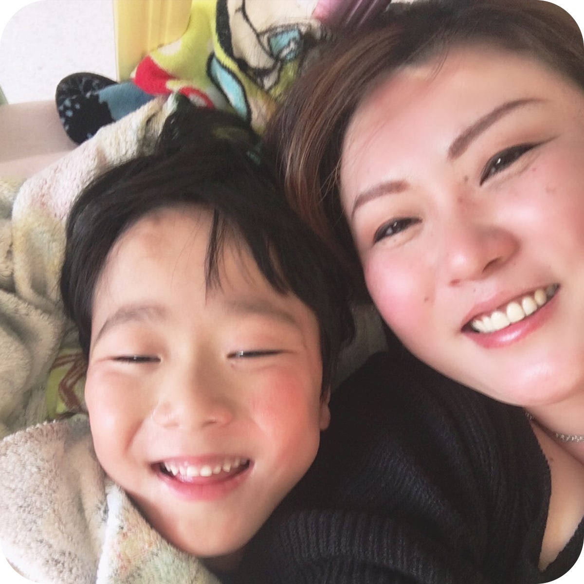 ▼ママが大好きなリュウト君!この笑顔を見るためにいつも優しく介護するママ友のユカさん♫