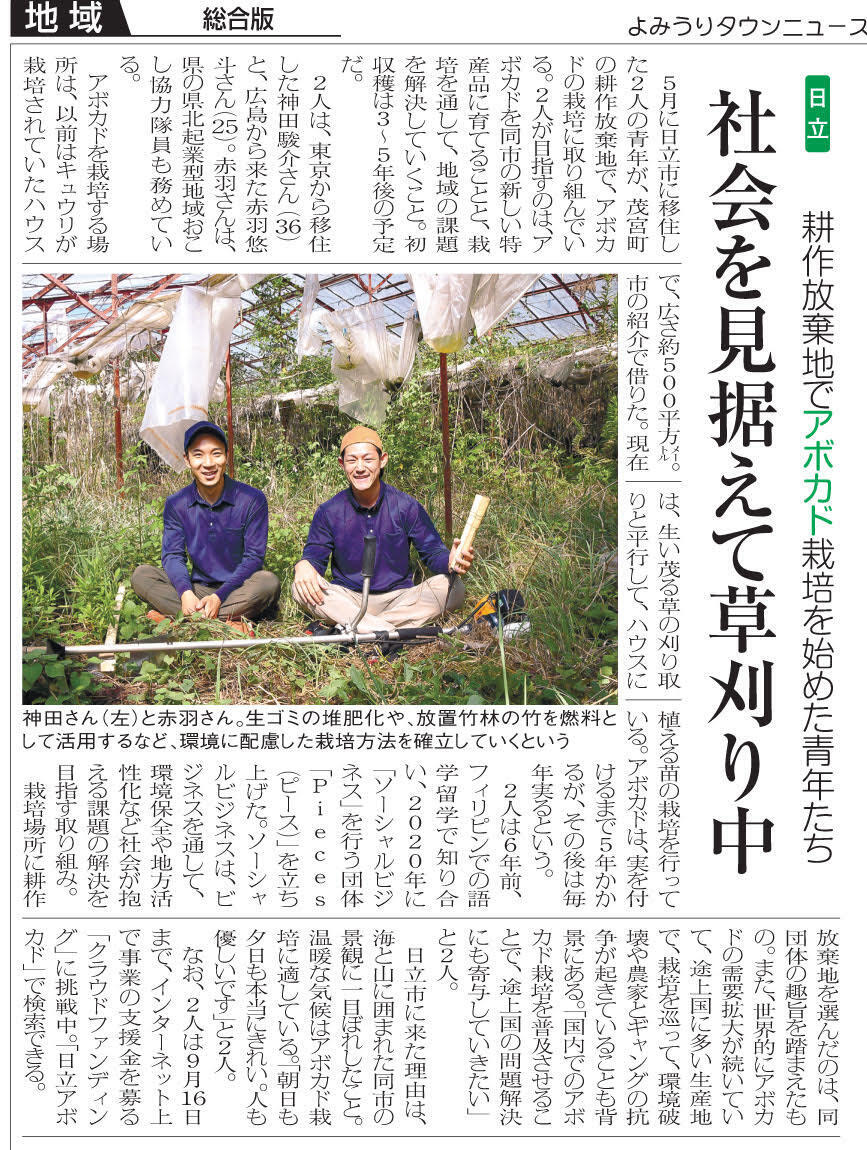 今日(9/8)のよみうりタウンニュースに、僕たちの取り組みを掲載していただきました!