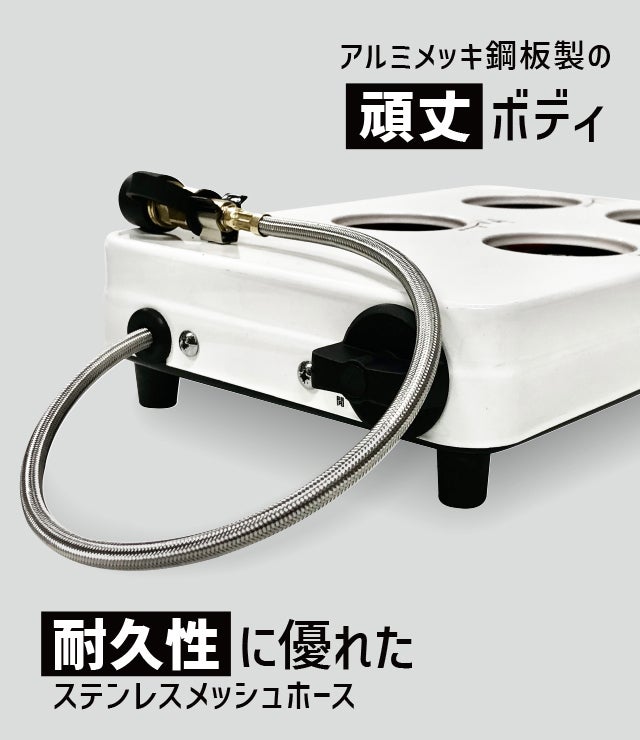 また、高級感あふれるアルミダイカスト製一体成型のボディで、多くのプロに採用された実績も持っています。ゴトク部分もアルミダイカスト製を採用し、通常のコンロよりタフな仕上がりになっています。