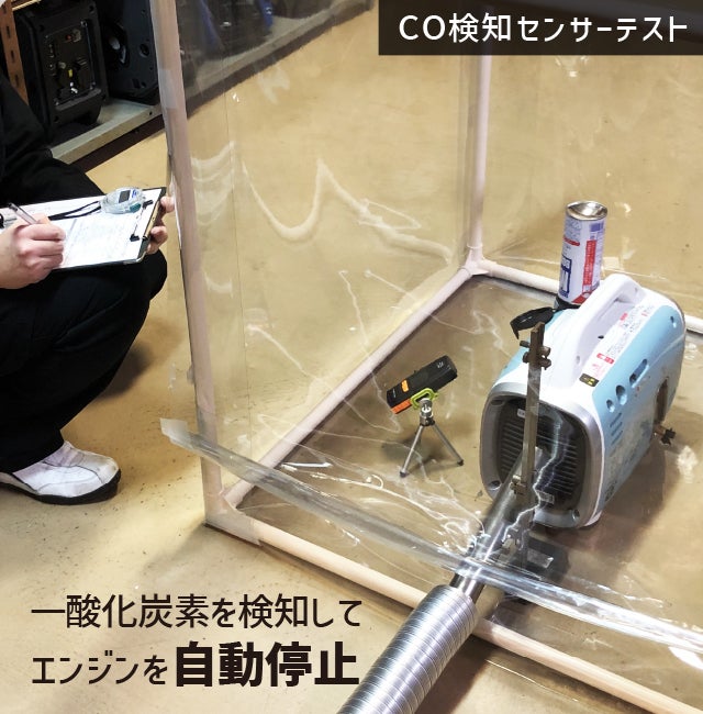 「クレマ」は業界で初めてCOセンサーを標準装備した発電機です。危険な濃度に達した時はエンジンを強制的に停止します。また始動直後から常に監視しているため、平均濃度が高くても強制停止することで事故を未然に防ぎます。