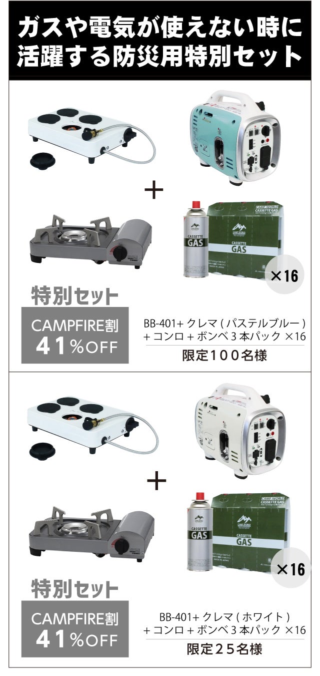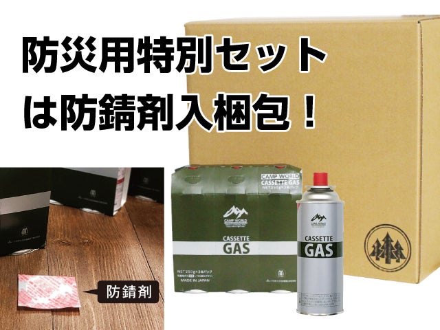 「カセットボンベ」一つで電気を利用したり、調理をしたりすることができる「防災用特別セット」です。防災の日は災害への備えを見直す日。そんな日におすすめしたいセットとなっています。