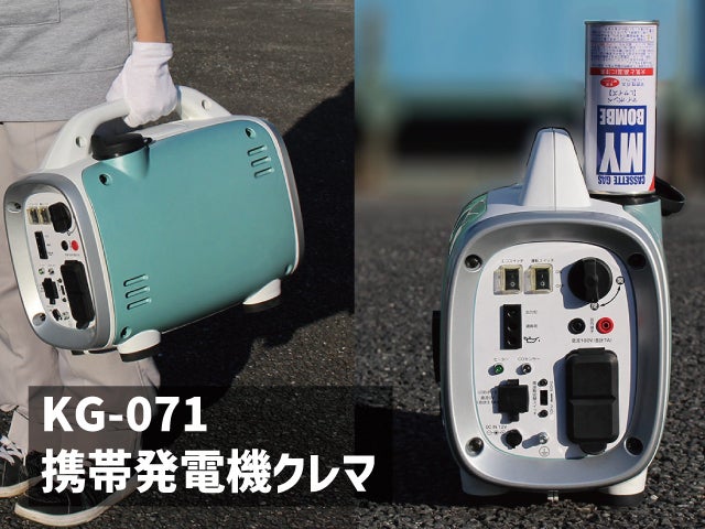 カセットボンベ1本で約40分運転が可能な携帯発電機「クレマ」。発電機のなかではコンパクトサイズで持ち運びもしやすいです。プレヒート機能搭載で寒冷地でも始動でき、業界初のCOセンサー搭載で一酸化炭素濃度を監視・事故防止を行う賢い製品です。