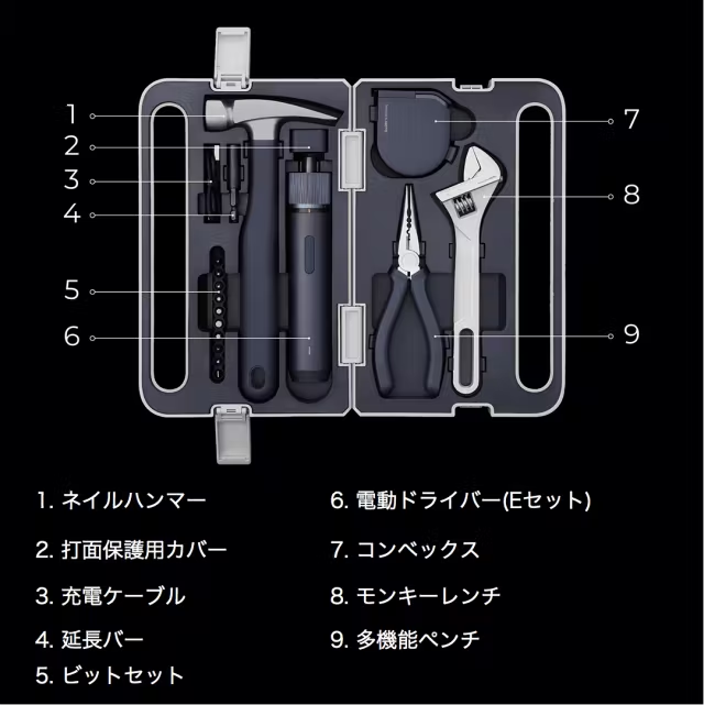 パッと見で工具に見えない、洗練されたデザインの収納ケースが付属しています。