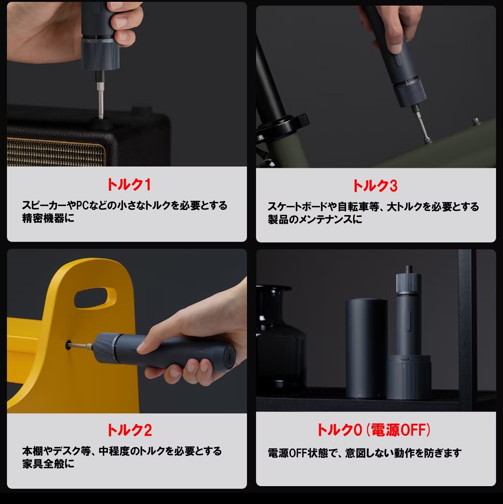 HOTO 手動ドライバーは以下の機能により、日常の様々なシーンで活躍します。