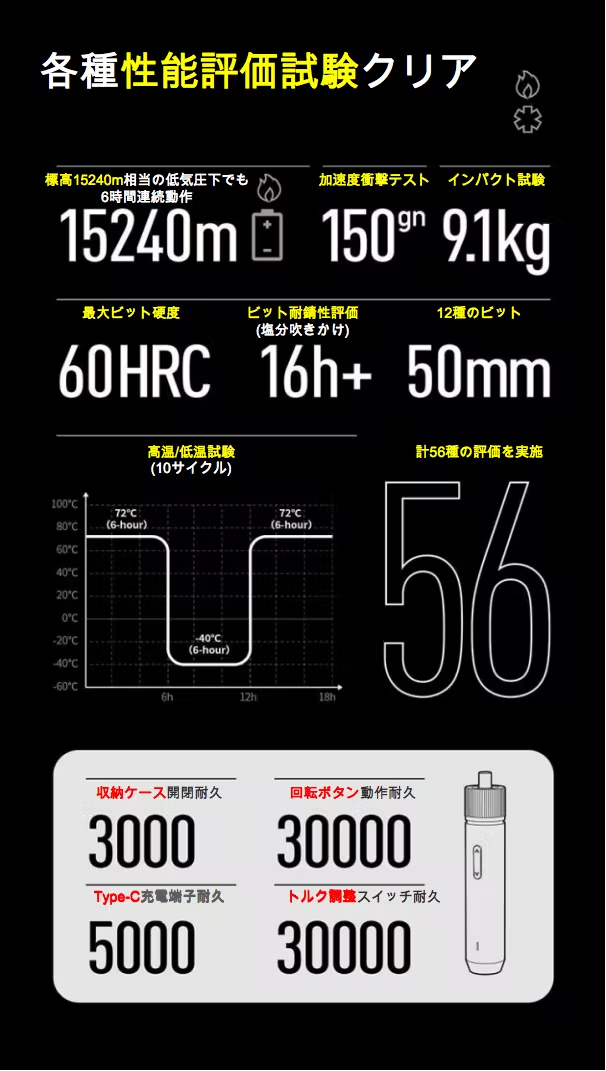 ・37もの安全性能確認用の社内試験を突破した1500mAhの大容量バッテリーは、長時間持続し満充電時には1000本以上のネジを締める or 緩めることが出来ます。