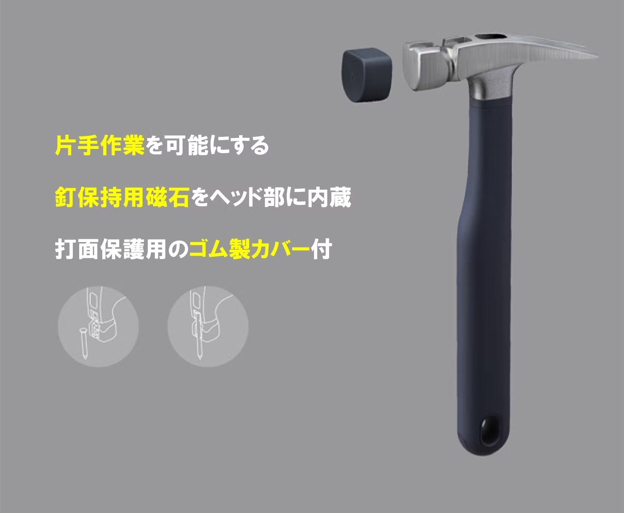 内蔵の磁石で釘を固定できるため、片手で簡単に釘打ちが可能です。