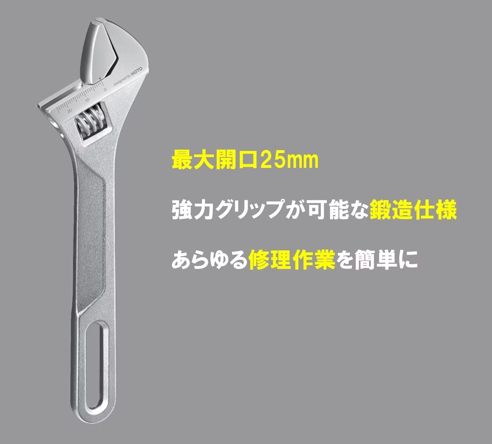 HOTO モンキーレンチは25mmまでの幅広いサイズのボルトに対応しており、丈夫な鍛造仕様で強いトルクをかけることが可能なため、様々な修理作業を簡単にします。