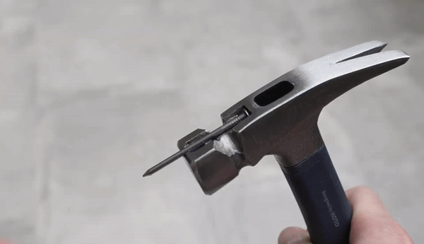 HOTO ネイルハンマーにはヘッド先端に釘を収められるスペースがあり、