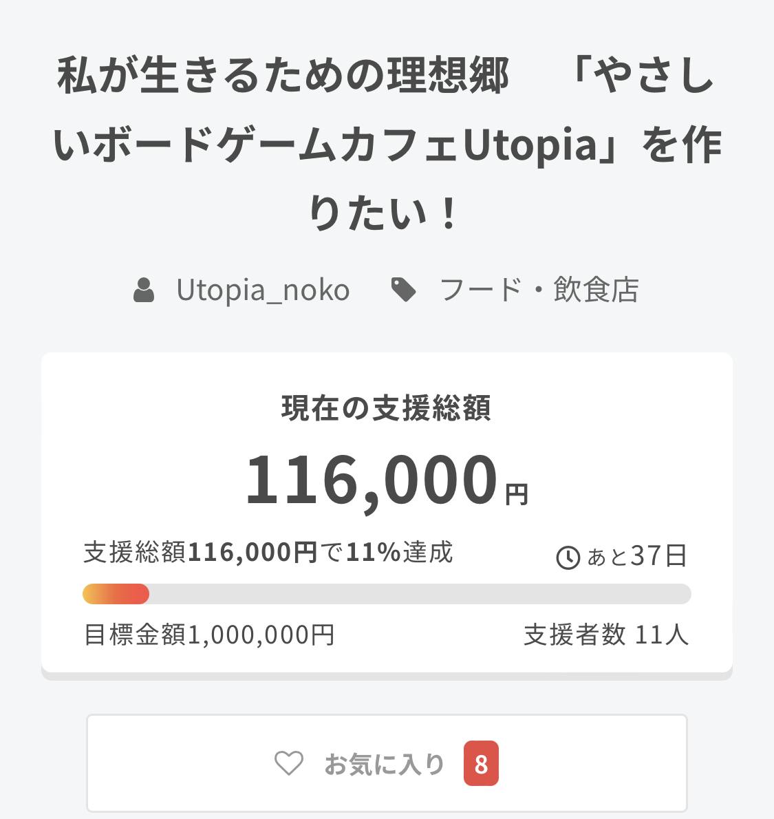 なんと、支援初日にも関わらず11人もの方にご支援いただき、116,000円もの支援が集まりました。