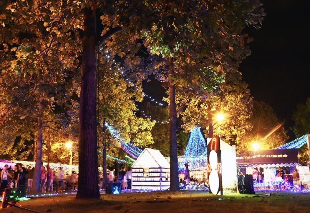 コトナリエとは、会場の10万平方メートルある「ひばり公園」を11万球の電球で飾る、夏のイルミネーションイベントです。