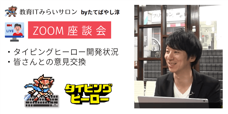 2022/09/19 11:38「タイピングヒーロー」クラファン協力者の皆さんとの限定コミュニティにて「Web座談会」を開催しました!・「タイピングヒーロー」の開発状況の共有・皆さんとの意見交換といったお話をしました。■ タイピングヒーロー開発状況10月に「ベータ版」のご提供を控える中、着々と開発が進んでいる様子をお伝えしました。現在のベータ版のデモプレイ映像もお見せしました。・「ストーリーモード」を実装・各ステージごとに「レッスン動画」が再生される・「スキル」(必殺技)を実装・「レベル画面」を実装・「スコア画面」を実装・「ミッション画面」を実装その他…■ アンケート調査簡易的なアンケートを行いました。Q1.お子さんは「ローマ字」を何歳から習っていますか?→多くの方が「小学校3年生」と解答。日本語タイピングをするのに必要とされる「ローマ字」の概念は、多くの小学校では3年生から習い始めるということがわかりました。ただし、中には小3以前から既にローマ字のタイピングをできる子もいるなど、お子さんの興味によっては積極的に先取りしている家庭もあるとの意見もありました。Q2.学校で習っているのは「訓令式」ですか?("お茶"と書く時、"otya"(訓令式)と書く?"ocha"(ヘボン式)と書く?)→これは解答が分かれており、全国の学校で統一されているわけではないような印象を受けました。■ 補足:訓令式、ヘボン式とは?ローマ字の書き方は一般的に「訓令式」「ヘボン式」と呼ばれる方法に分かれます。訓令式は、「し」を「SI」、「しゃ」を「SYA」と書くなど、日本人に馴染みやすい書き方です。ヘボン式は「し」を「SHI」、「しゃ」を「SHA」と書くなど、英語圏の人には馴染みやすい書き方です。■ 参加者からの意見(抜粋、順不同)・いま自分の子供はヘボン式で習っている模様・自分が子供の頃は、訓令式で習った覚えがある・英語を習い始めるとヘボン式の方が英語の発音とリンクしているので、混乱しないのでは?■ 今回のアンケート結果を受けて:・学校ではどちらを習っているのか、広くSNSなどでも追加アンケートを取ってみたいと思います。・「タイピングヒーロー」では、ローマ字についてのビデオ解説もする予定です。その中では、お子さんが知っている書き方が「訓令式」でも「ヘボン式」だとしても対応できるよう、「どちらの書き方もあるから、馴染みやすい方でタイピングすればいいよ」という幅をもたせた解説をしたいと考えました。その他、タイピングヒーローについて意見交換■ 子供だけでなく「じいじ・ばあばとも一緒に楽しめる」という視点もあれば良いですね(指を動かすことは認知症の予防にも高い効果があると介護施設の方が示唆している。タイピングもその取り組みの1つとして期待できるし、お子さんと祖父母のコミュニケーションのツールとしての役割も担うことができるかもしれない)■ 団体向けのアカウントがあると良いですね(放課後デイサービスなどへ出張授業をしているプログラミングの先生より、「出張授業などで、多数のお子さんにタイピング練習を楽しんでもらいたい」という声もいただいた。現状のタイピングヒーローは、個人が1つのアカウントを登録することでプレイできる仕組みになっている。しかし、団体で一括管理して同時にプレイできるアカウントの仕組みはまだ無い。そのニーズが高いと思われるため、今後の仕様追加を考えていきたい)■ こんな機能があると良いですね(アイディア)> 1.ランダムに出現する「何か」(風船アイテムみたいなもの)現状、お子さんがプレイする間、お子さんの「目線」は、問題文の四角い枠にずっと集中してしまい(主人公やモンスターの動きを見ている余裕がなく)目線の変化が起こりにくい。特に小さいお子さんは、ずっと同じ場所を見つめ続けるのが難しい子もいるため、何かランダムな変化があった方がいいかもしれない。例えば風船がランダムに出現して、それを狙い撃つと得点や技が手に入るなど。> 2.ランキングの仕組みランキングを競うことでやる気が加熱するタイプの子もいる。(特に団体で取り組む場合、団体内でのランキングなどを表示する機能もあると良いのではないか)> 3.ボス、中ボス、ラスボス強敵のモンスターが出てくると燃える。(お子さんからの希望もあり)途中で「中ボス」などが現れることで、それを倒して途中の達成感を得るしくみ/また、ラスボスのような最終目標もあると良いのではないか> 4.ある文体に特化したモード(プログラミング言語など)例えば出題される問題が、全てプログラミングのコードだったり、あるいは一定時間だけすべて関西弁の問題が出題されるなど、ある文体に特化したプレイモードがあると変化があって面白いのではないかピックアップ:ドローン×プログラミング教室を開催中の「たかなる教室」中川さんhttps://www.instagram.com/takanaru_dropro/ドローンの動きをプログラムして実際に飛ばすという教室や出張イベントを開催。学