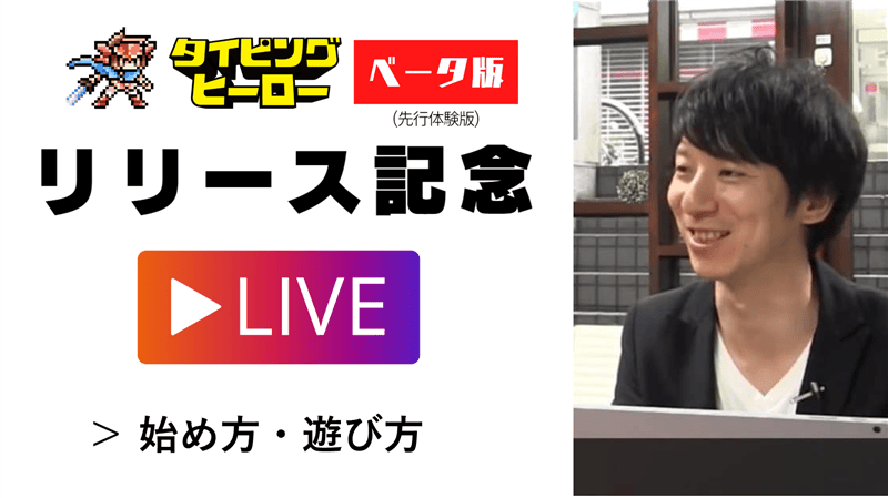 2022/10/24 19:00タイピングヒーローの「ベータ版(先行体験版)」を、(クラファン支援者の皆さん限)ついに公開しました!また、「リリース記念ライブ」を放送いたしました!▼ライブの録画の一部(プレビュー)を添付します。(画面はベータ版ですので、正式版とは見た目が異なります)https://vimeo.com/763276057/4ad7630be6ライブでは、①「ベータ版」をプレイするためのURLの発表(※クラファン支援者限定で配信しました)②実際のプレイ画面を見せながら、- ユーザー登録の方法- 遊び方、おすすめの練習モード- 仕組みの説明(スコアやレベルなど)などを説明いたしました。③質問コーナー・機能リクエストをリアルタイムのチャットで募集しました。数多くのチャットをいただき、- 早速プレイしてみた感想- 機能リクエスト- 登録時のトラブルなどを、活発にフィードバックいただきました。初日から早くもスコアが活発に更新されており、皆さんの「ミッションクリア」が共有されています。(画面右下にミッションクリア者が公開されている様子が見えます) ■ 2023年「正式版」のリリースに向けて… 「タイピングヒーロー」の開発は、まだ終わりではありません。今回の「ベータ版」をクラファン支援者の皆さんにプレイしていただき、感想やバグ報告を集め、2023年上旬に「正式版」をリリースするべく、さらなる改良・機能追加を続けていきます。ですので、支援者の皆さんからの『感想、機能リクエスト、バグ報告』をご協力お願いします!※限定コミュニティへの参加方法は、クラファン支援者の皆さんに限定でご案内しています! もっと見る