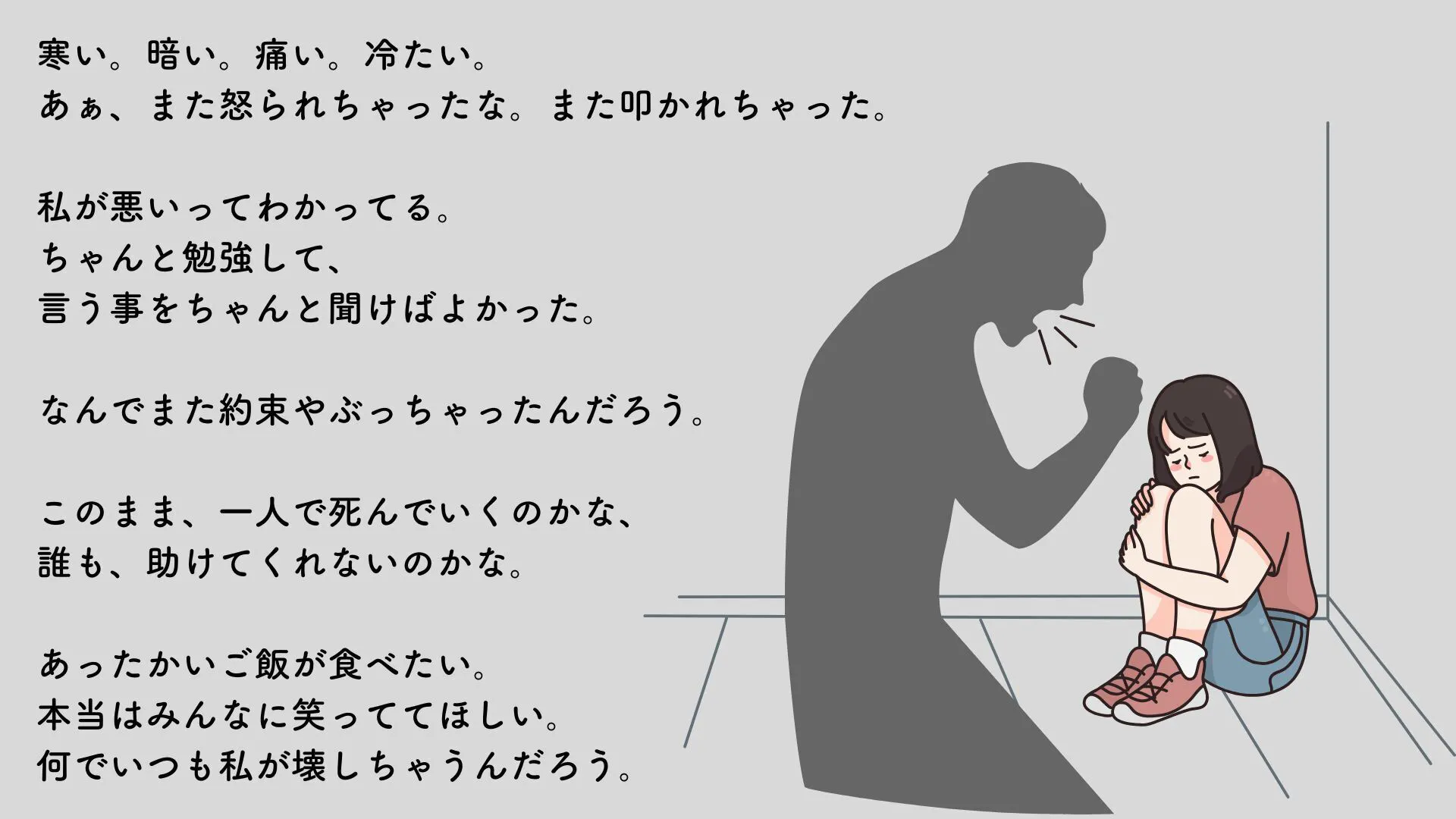 当時、そんな家庭環境を相談できる居場所はなく、隠し通すことで精一杯でした。