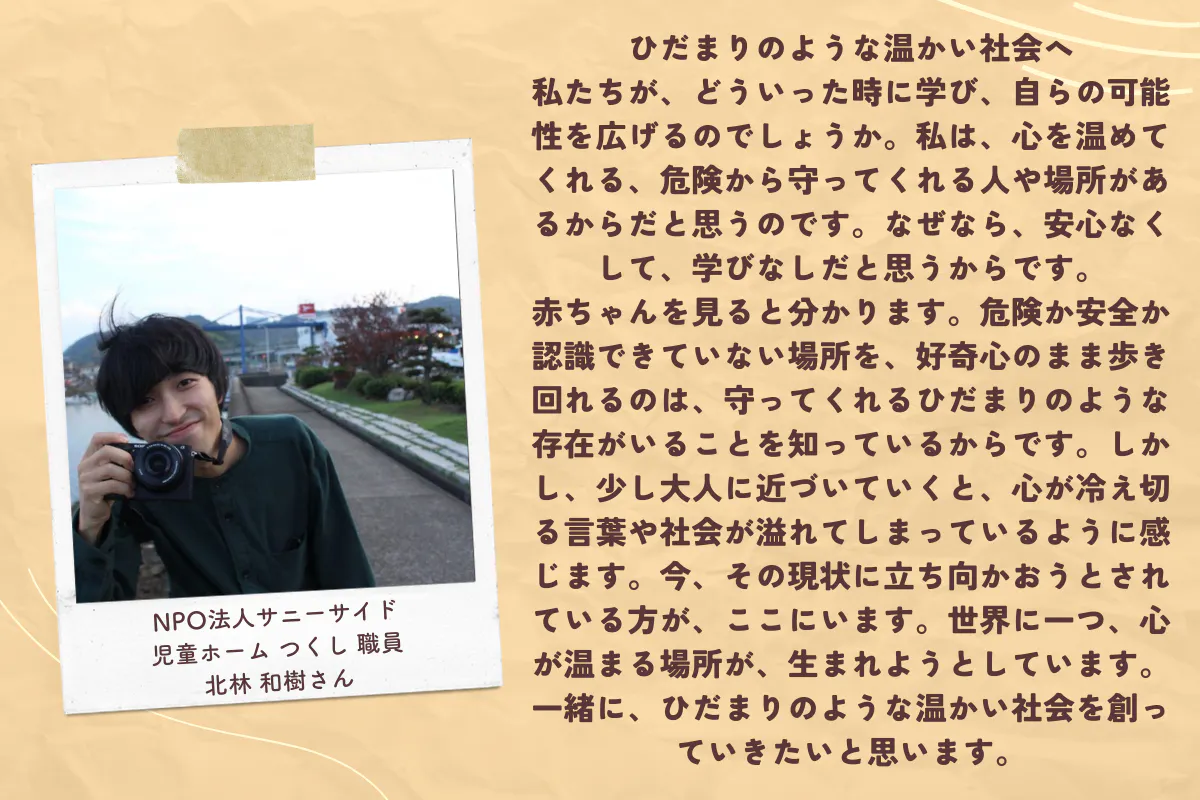 きっと『ひだまり無料塾』は、様々な方の思いや願いが沢山詰まった、ひだまりのようにあたたかい居場所になるでしょう。