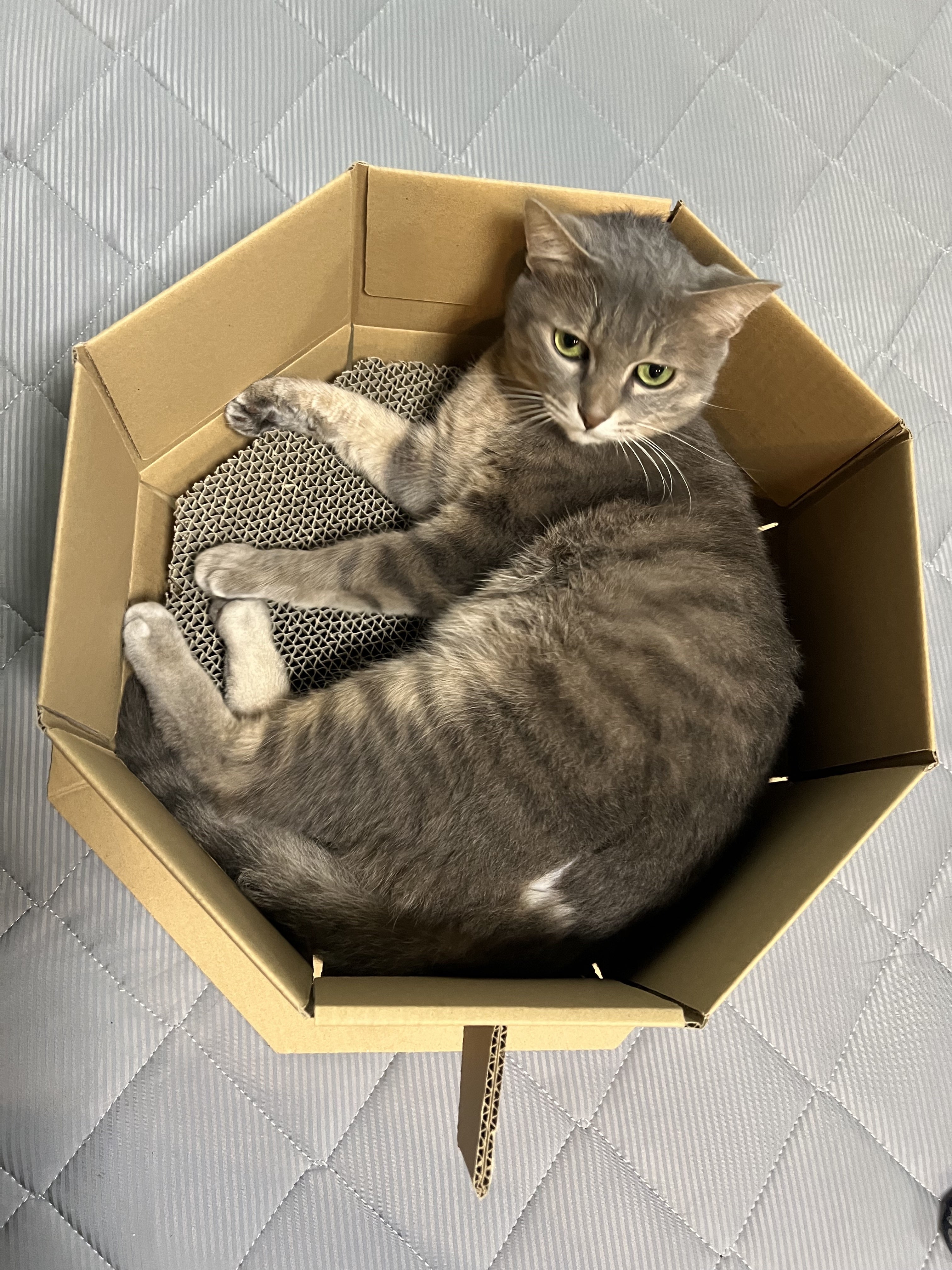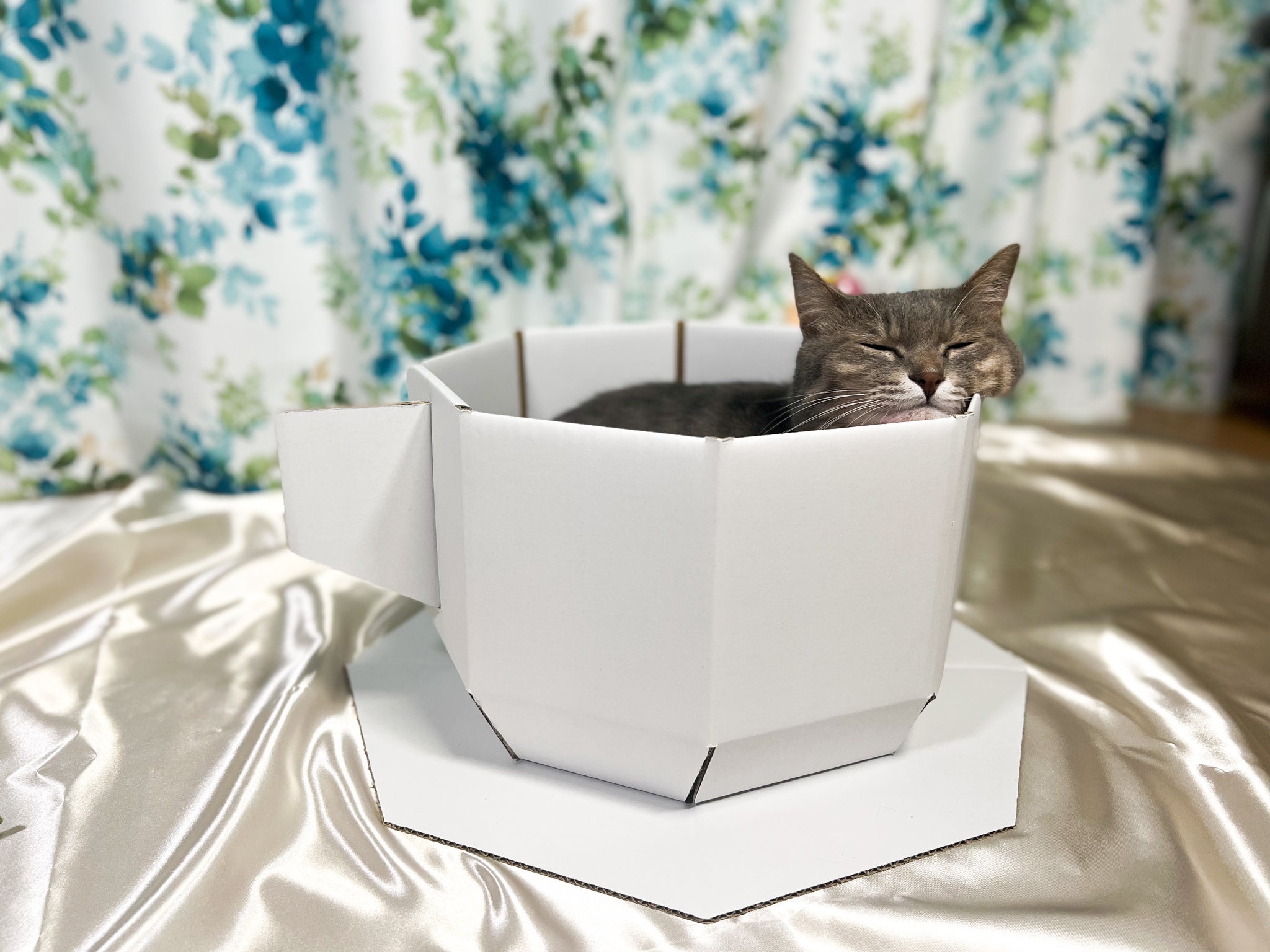 この時も組み立て時から興味津々のマグロさん。早速入ってくれて、しばらくしたら寝ていました(笑)ベッドとしてくつろぐ様子もわかってよかったです!!