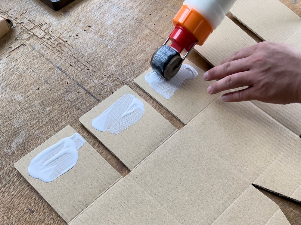 縁の部分は二重になっているので、一つづつ貼り付けるためにボンドを塗っていきます。