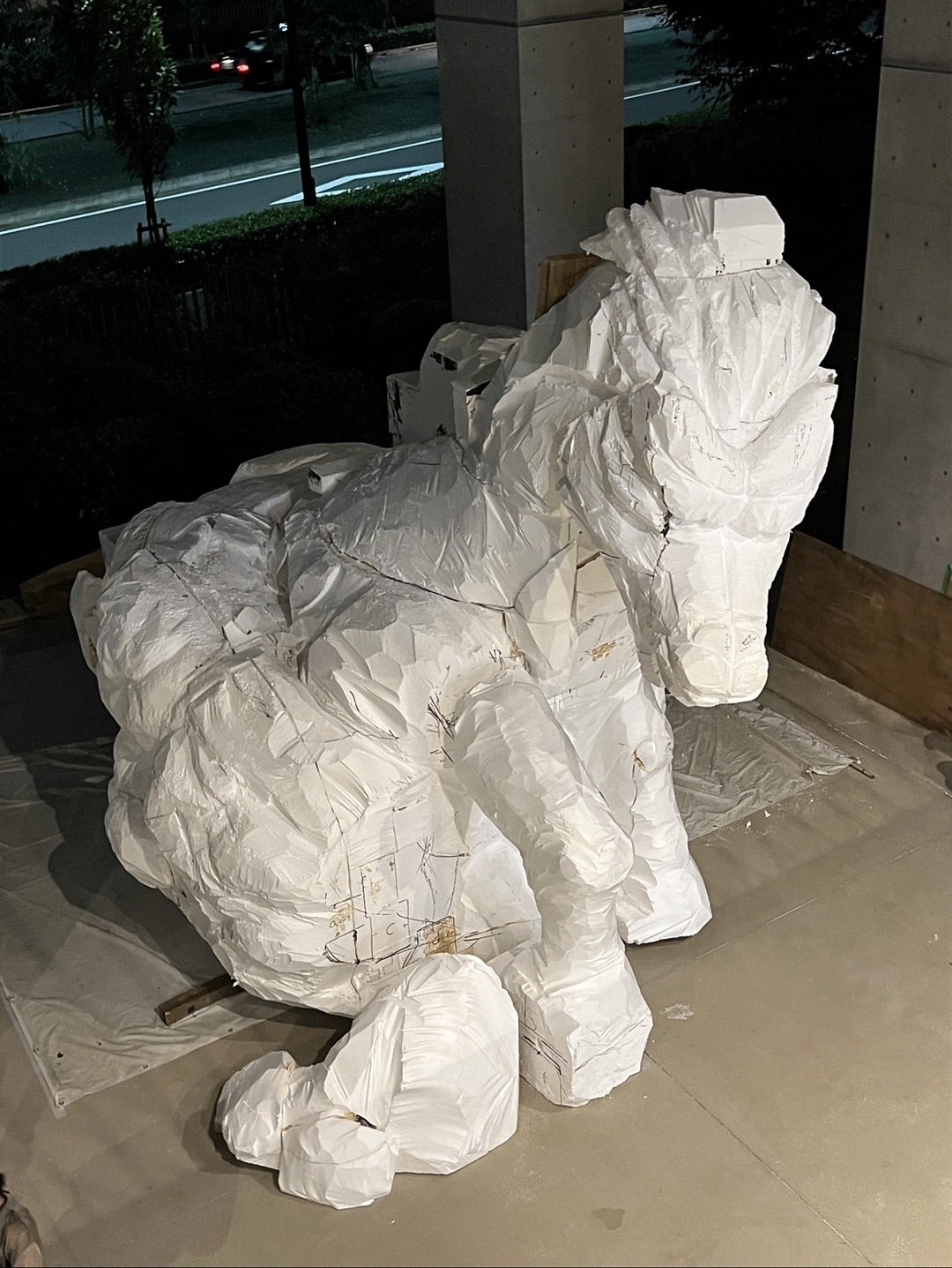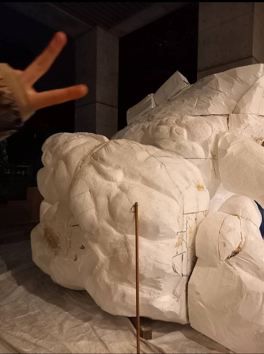 マケットが完成すると、本番の、高さ約3メートルの巨大発泡スチロールに手をつけていきます。これだけ大きいとワクワクしますね!