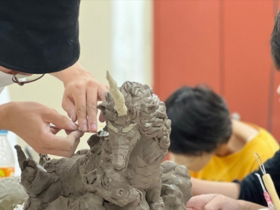 麒麟の筋肉や骨格を忠実に形にしていきます。実在する動物(馬など)を参考に、試行錯誤を重ねて製作します。