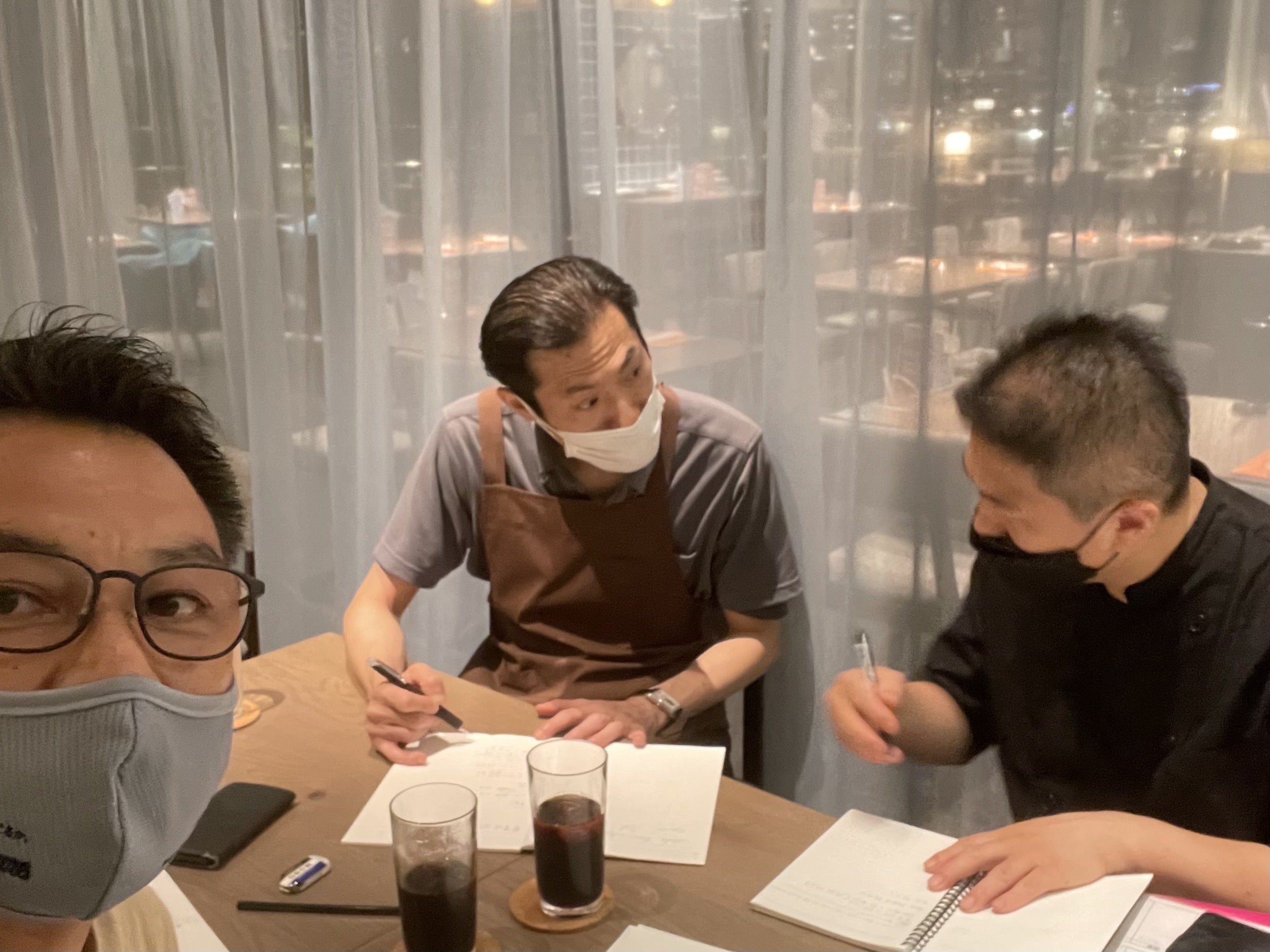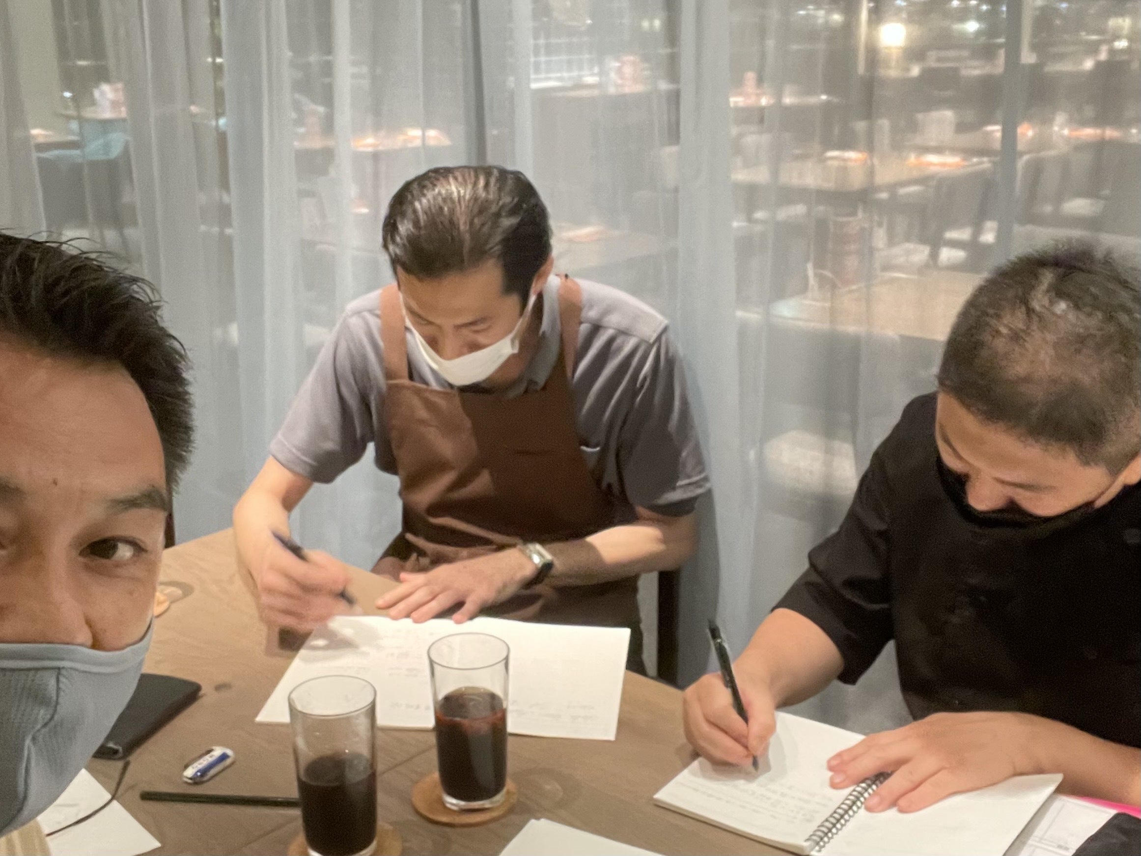 手塚シェフと長瀬マネージャーとは秋からのONEのメニューについての打ち合わせ