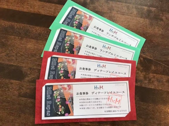◆アッシュ×エム、ONE共通 11,000円分のお食事券+グラスワイン券2枚
