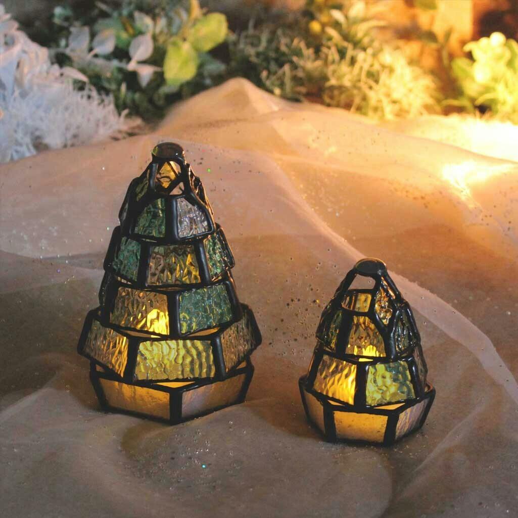 こちらも、ステンドグラスのティファニー技法で製作した小さな小さなランプです。